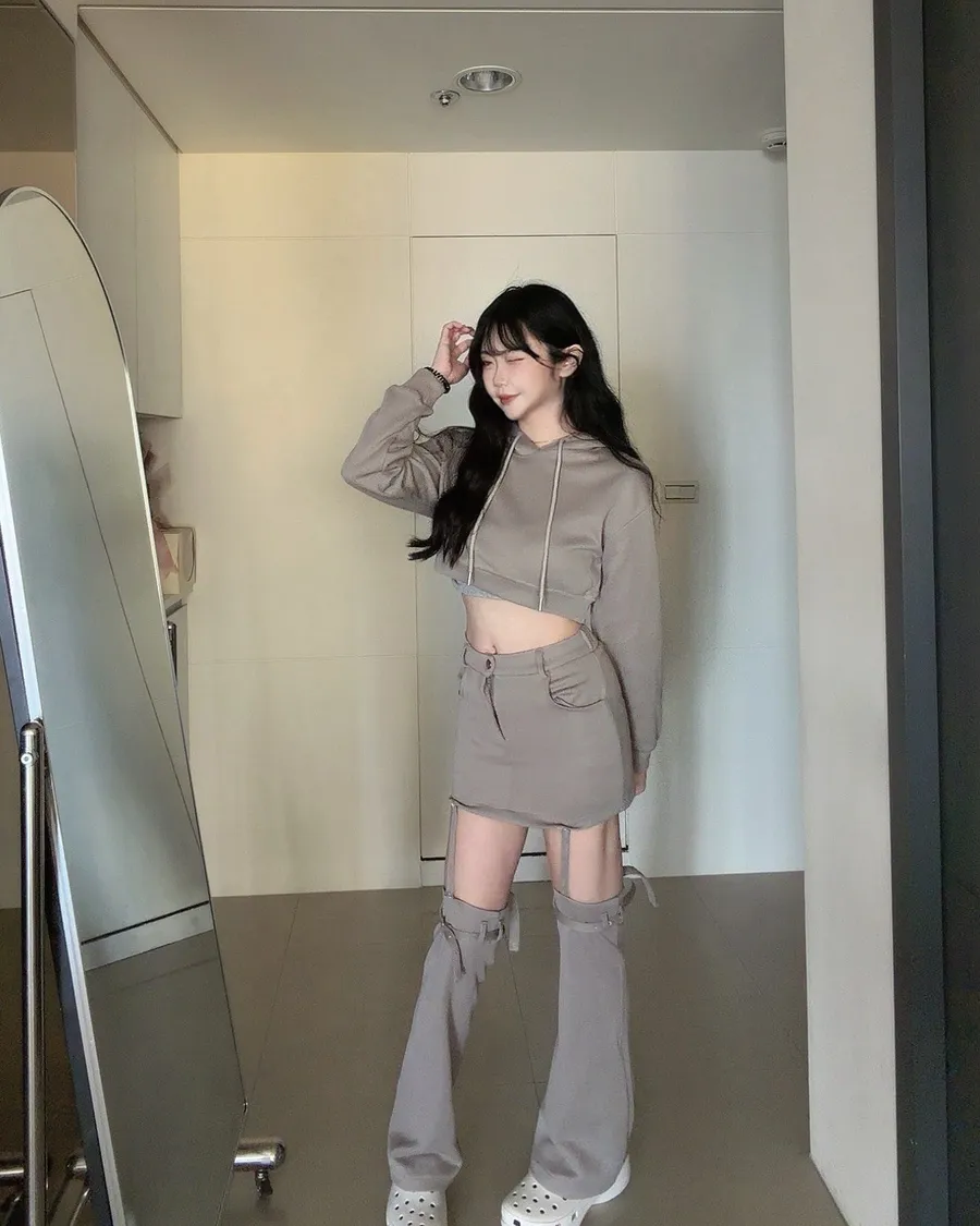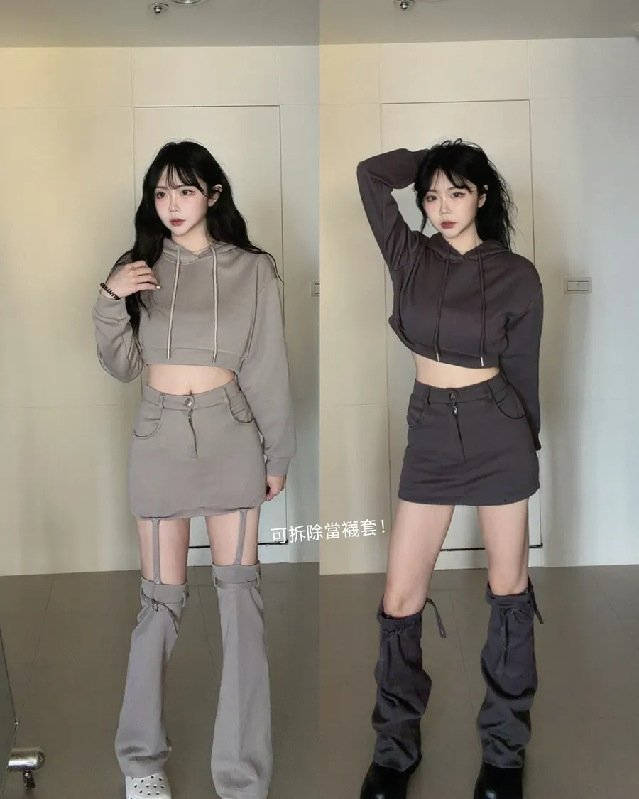 超炸街🔥3種穿法連帽短版上衣+可拆式褲裙set