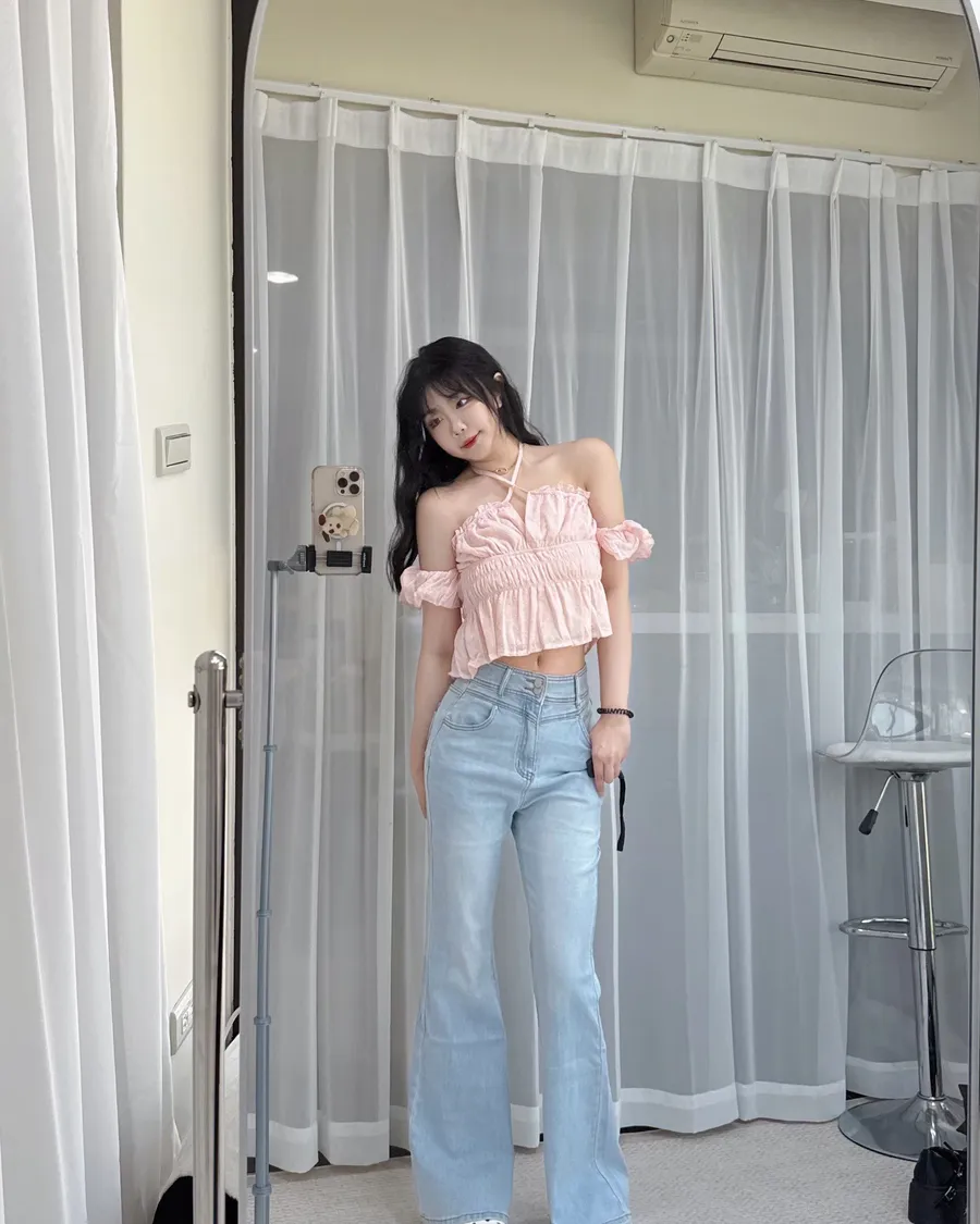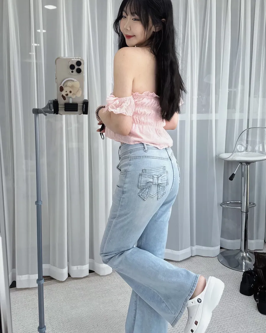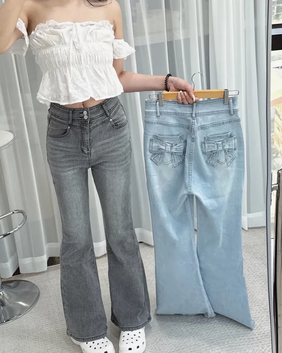 闆娘大推!顯瘦蝴蝶結口袋牛仔喇叭褲