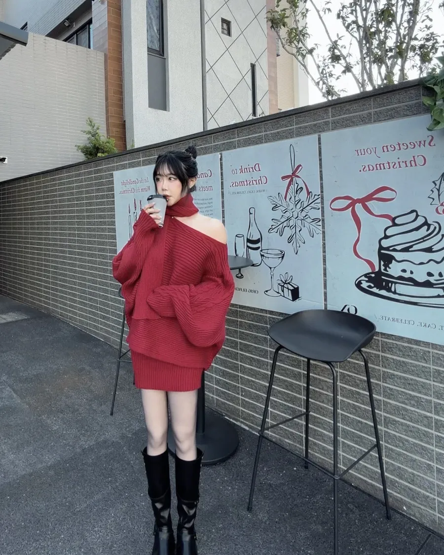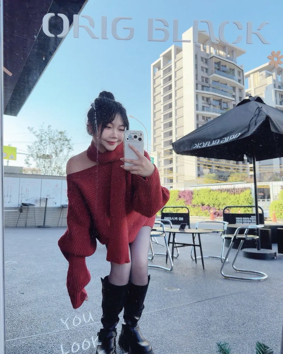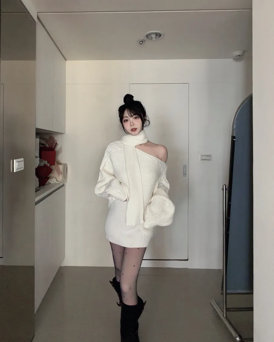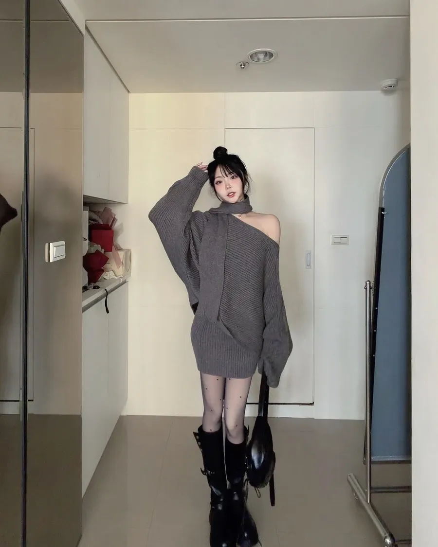 必帶三件套🧣爆款坑條斜肩上衣+圍巾+短裙set