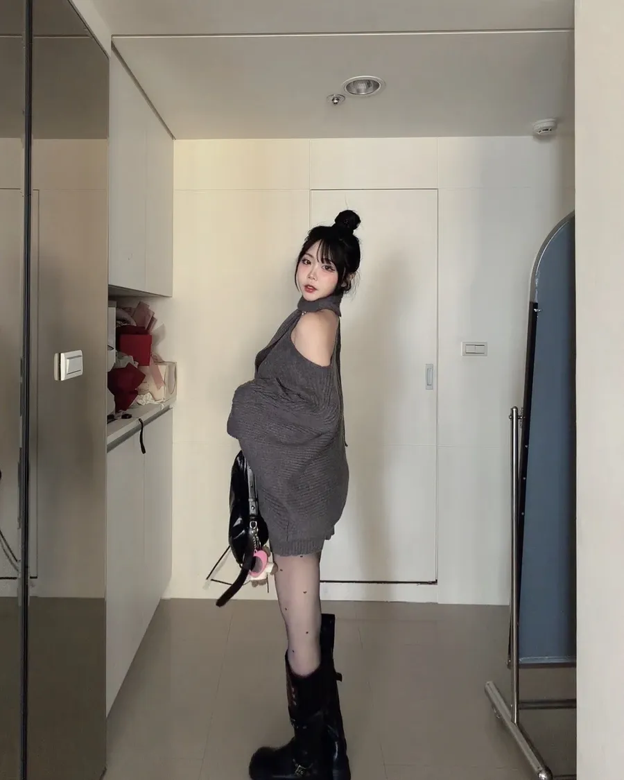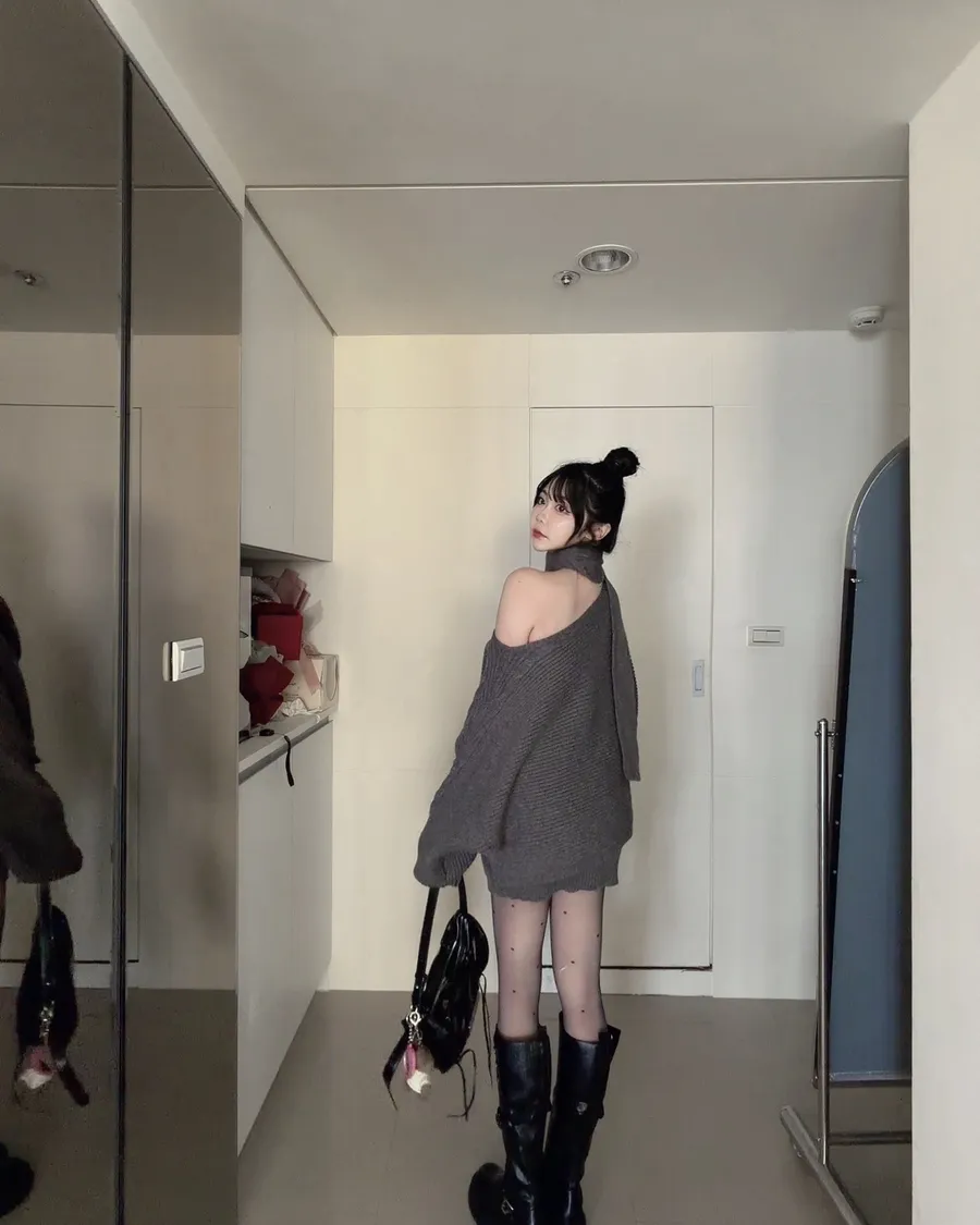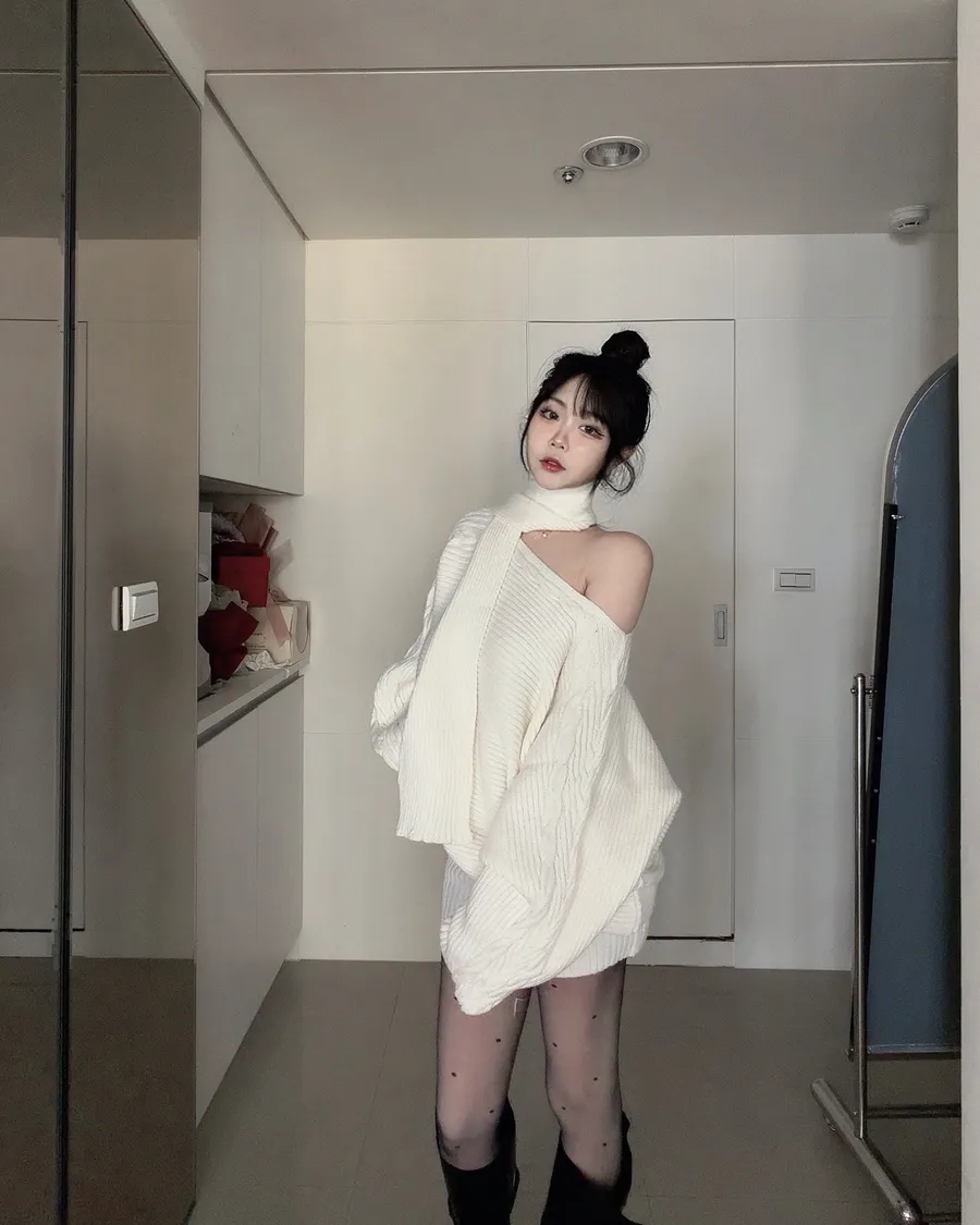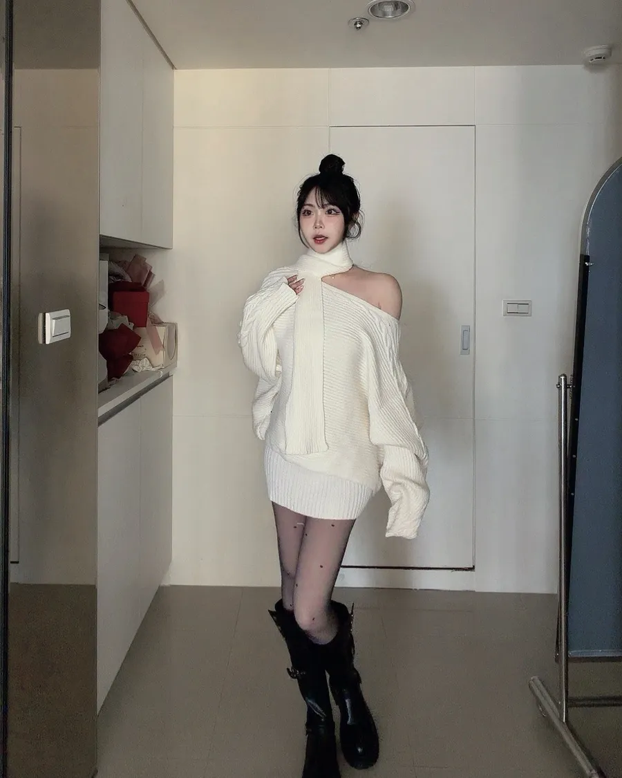必帶三件套🧣爆款坑條斜肩上衣+圍巾+短裙set