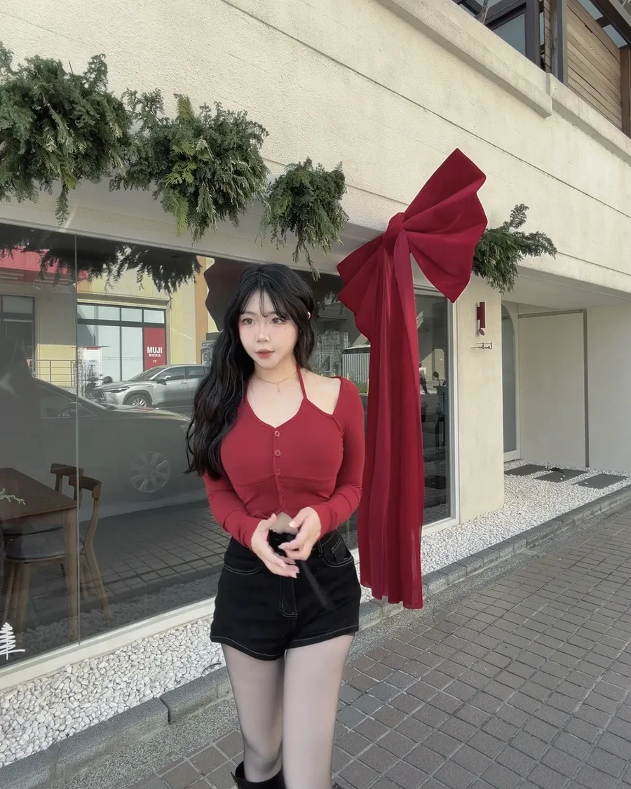 闆娘自留❤️顯瘦合身排扣繞脖上衣