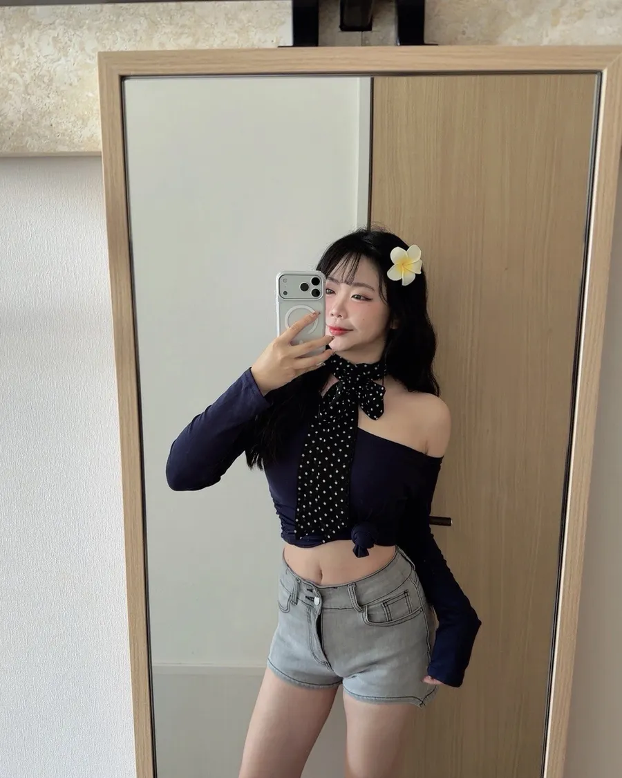 莫代爾棉造型絲巾斜肩上衣(附絲巾)