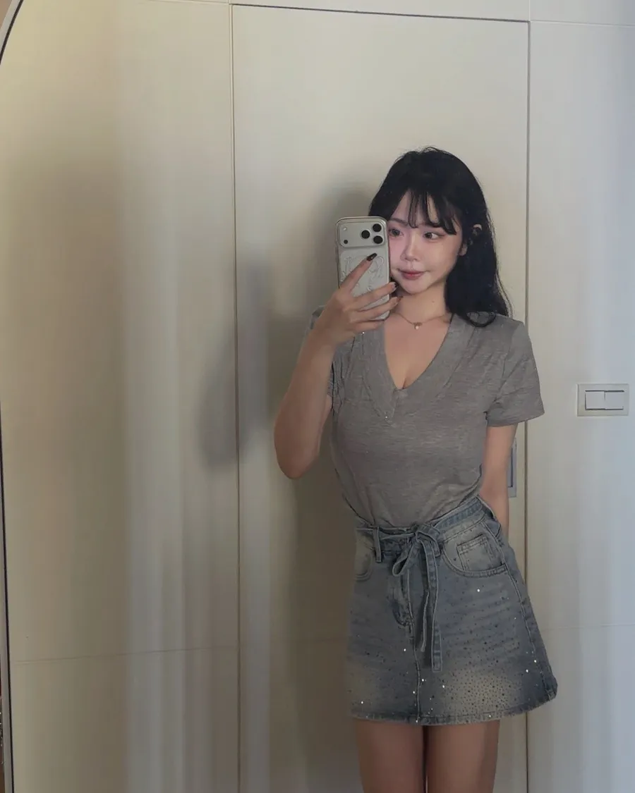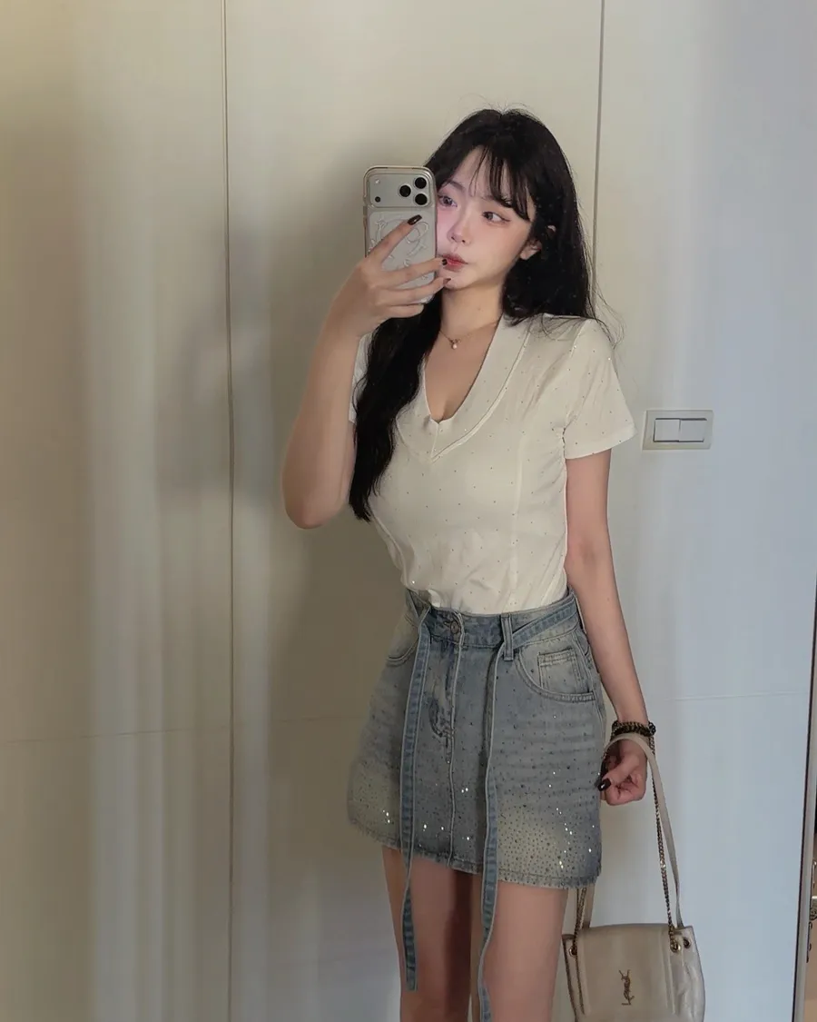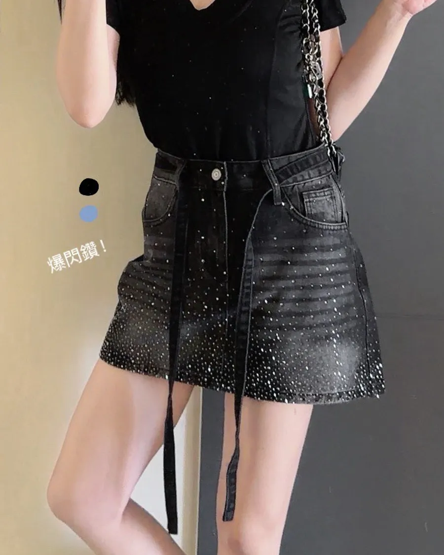 ✨爆閃燙鑽牛仔短裙(附綁帶)