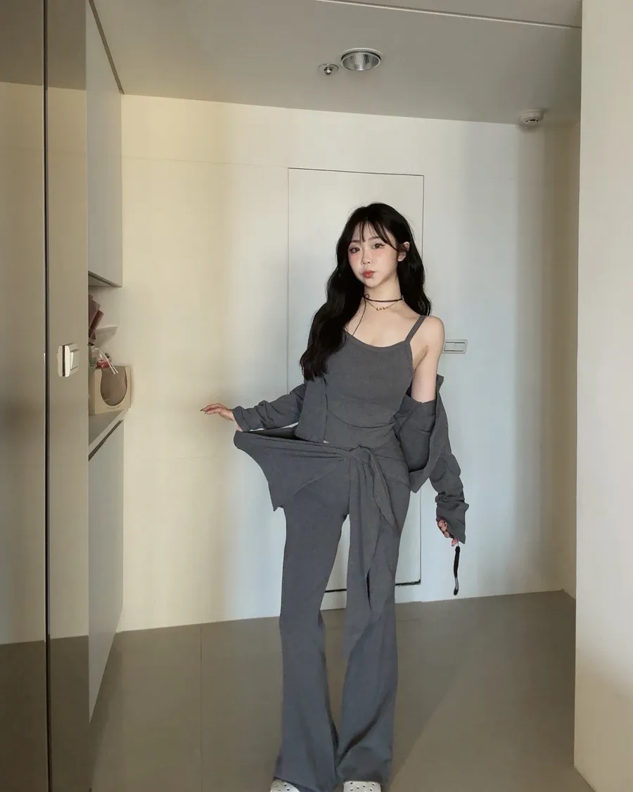 三件套🖤慵懶腰綁帶造型瘦長褲套裝