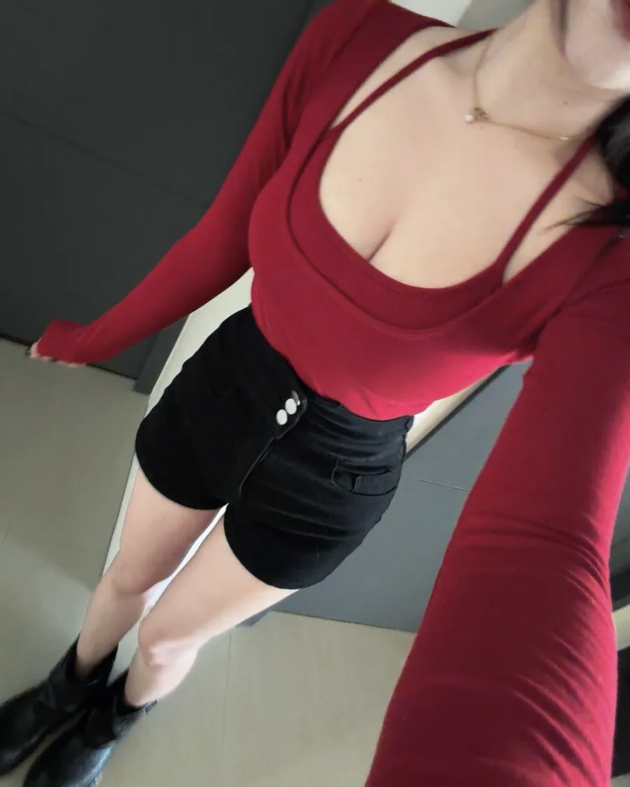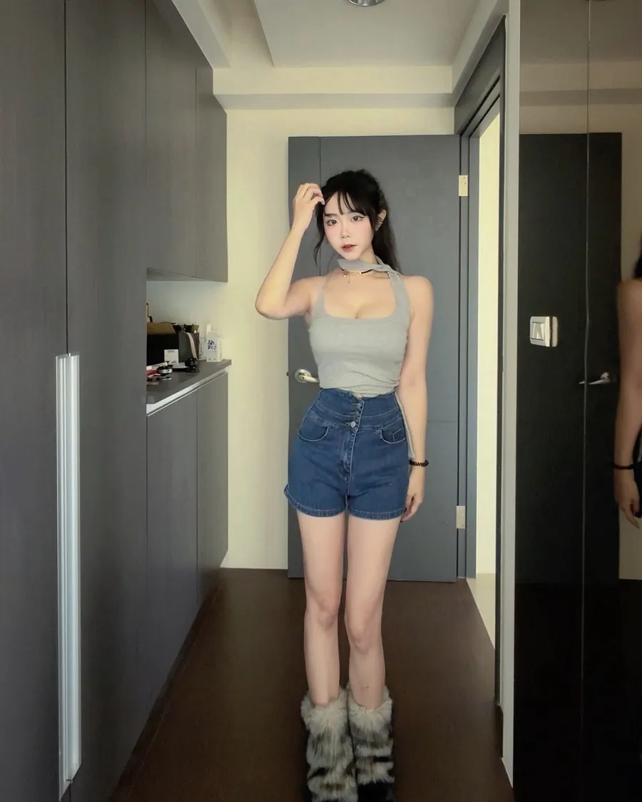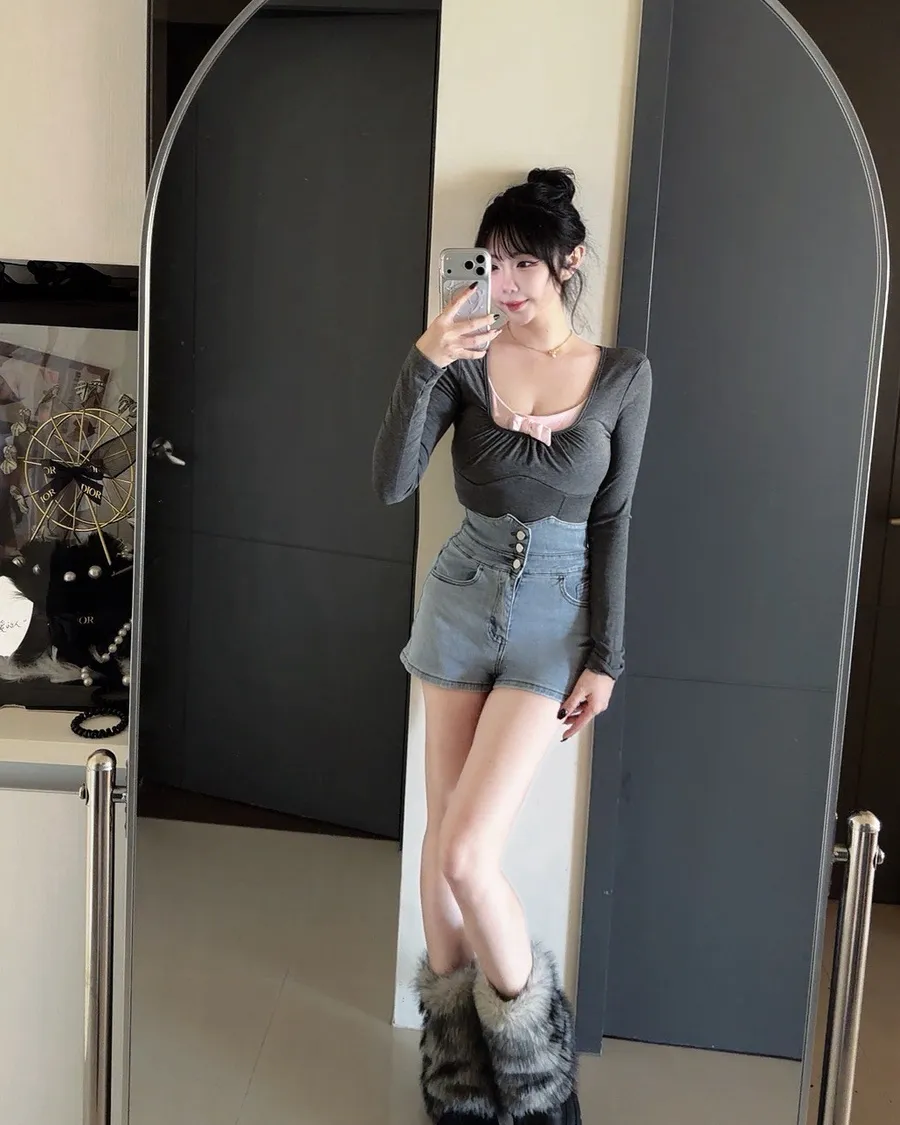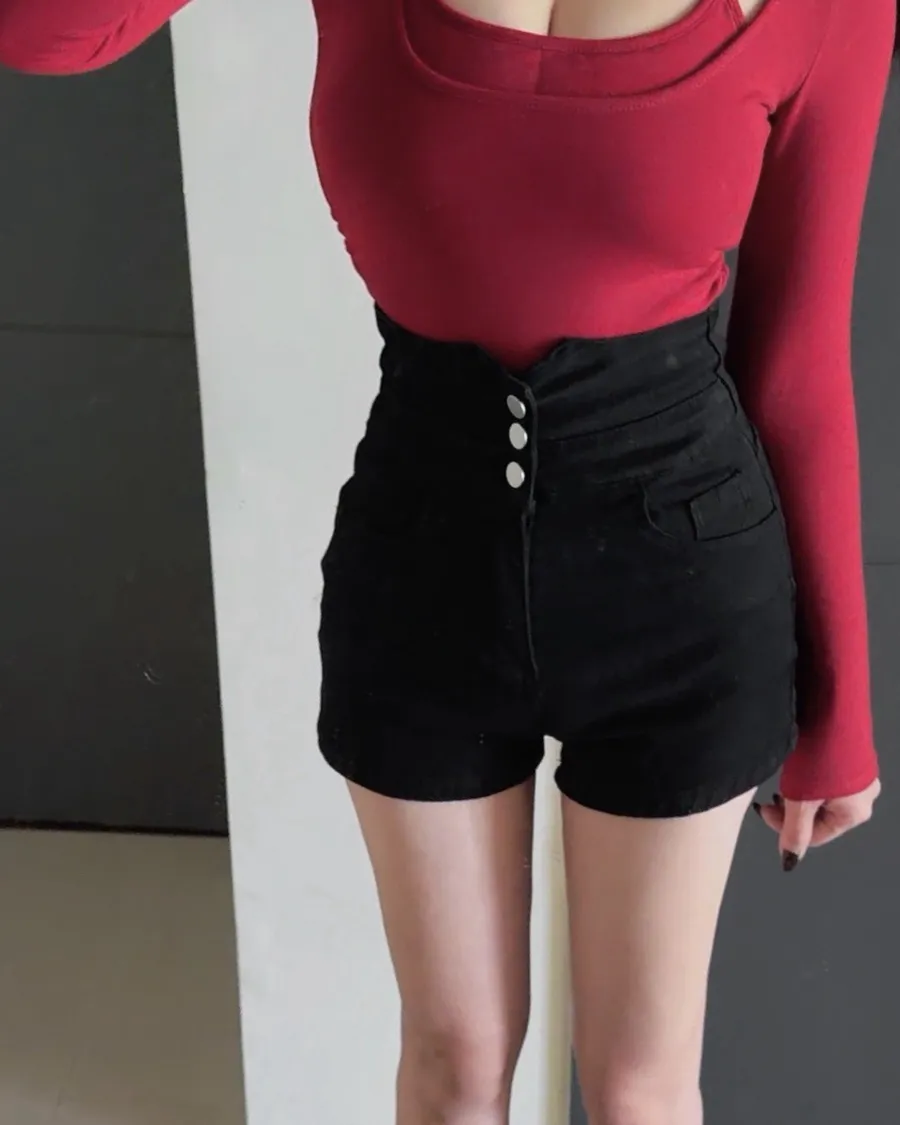 必帶款!!三釦高腰修身後交叉牛仔短褲