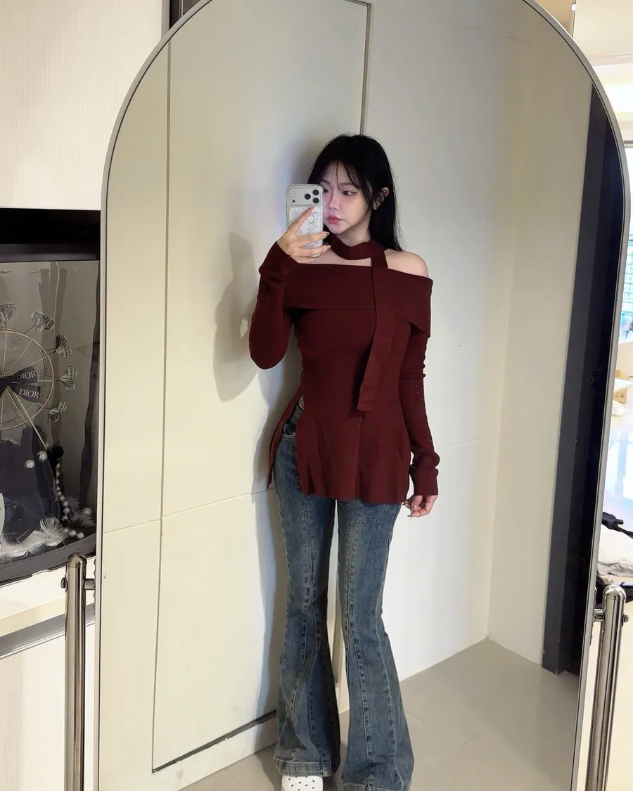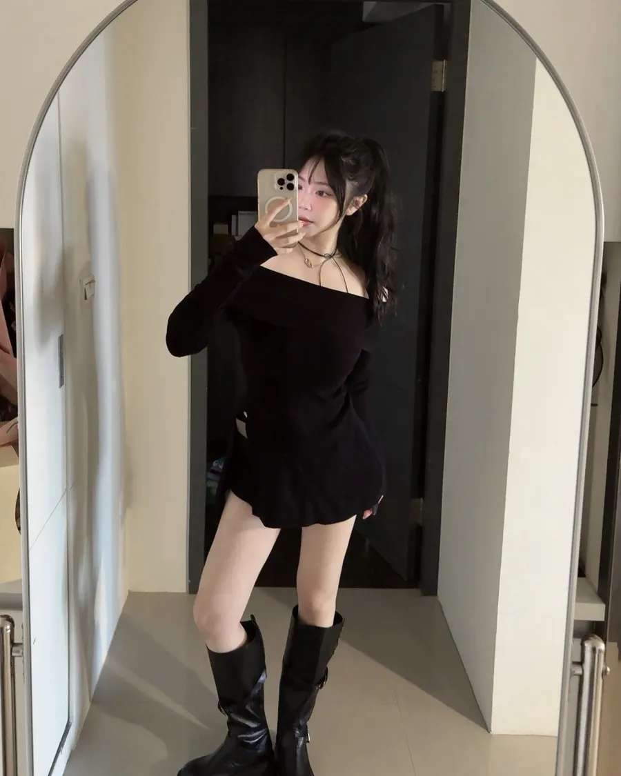 闆娘自留超顯瘦🩶五色一字領修身開衩針織上衣