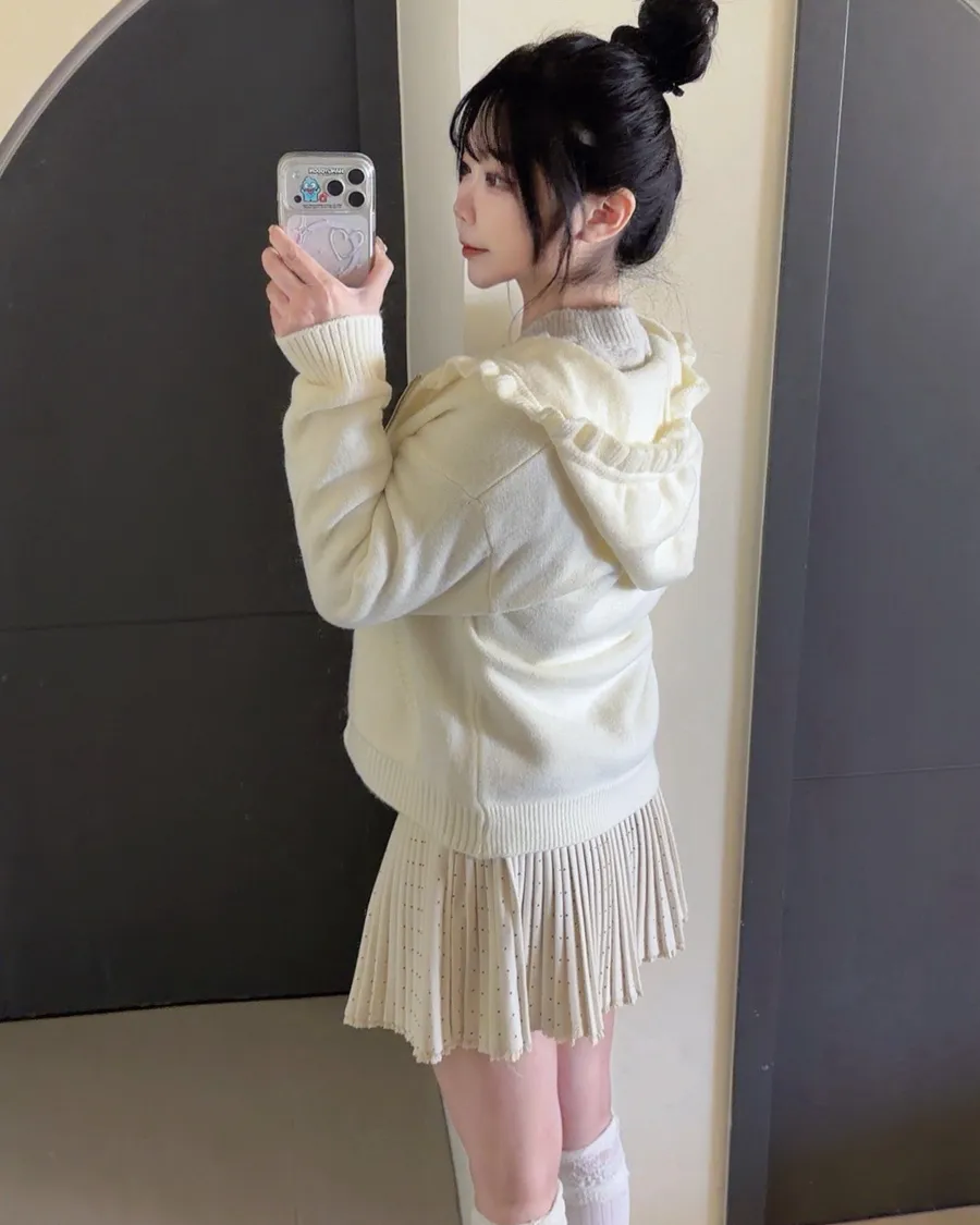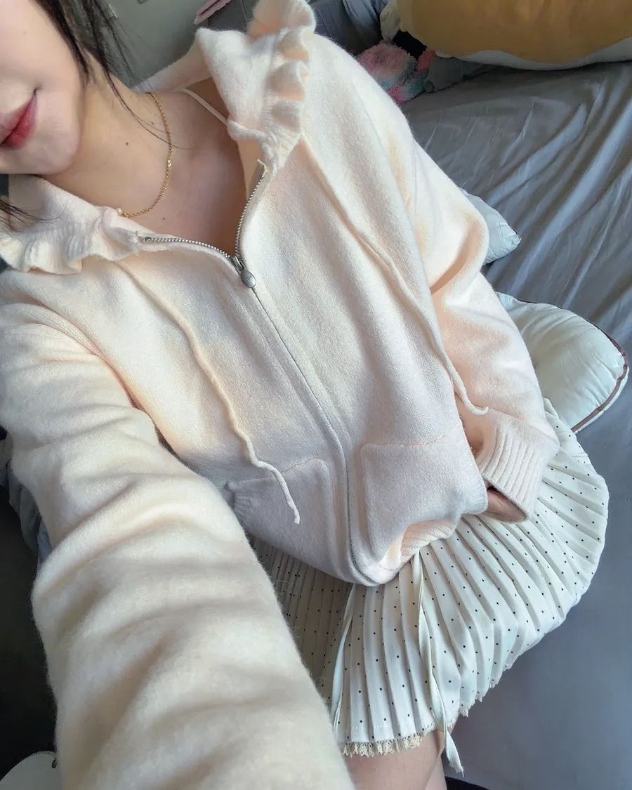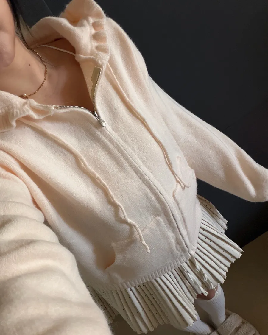 荷葉邊連帽針織拉鍊外套