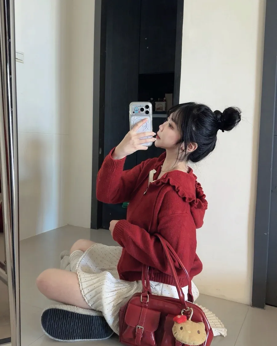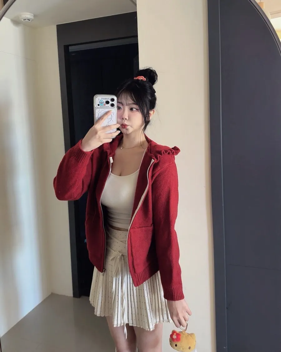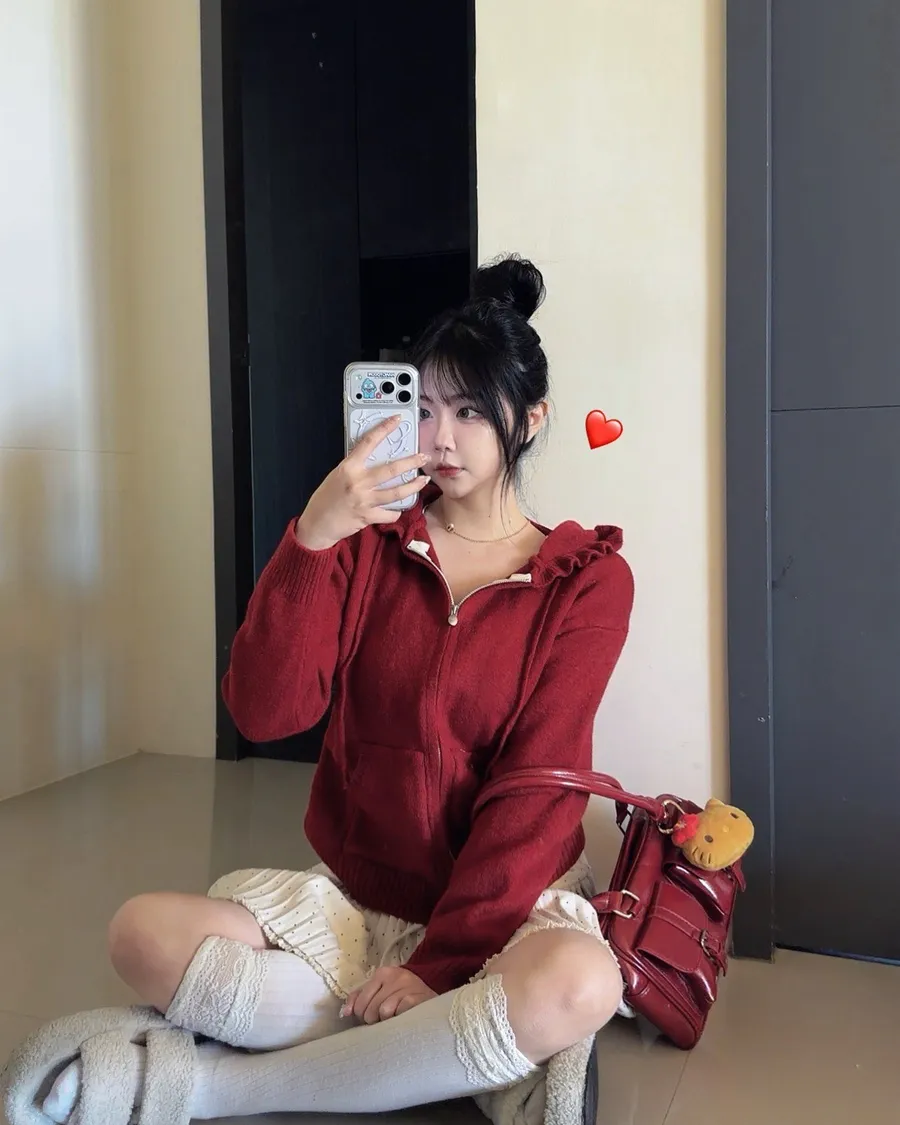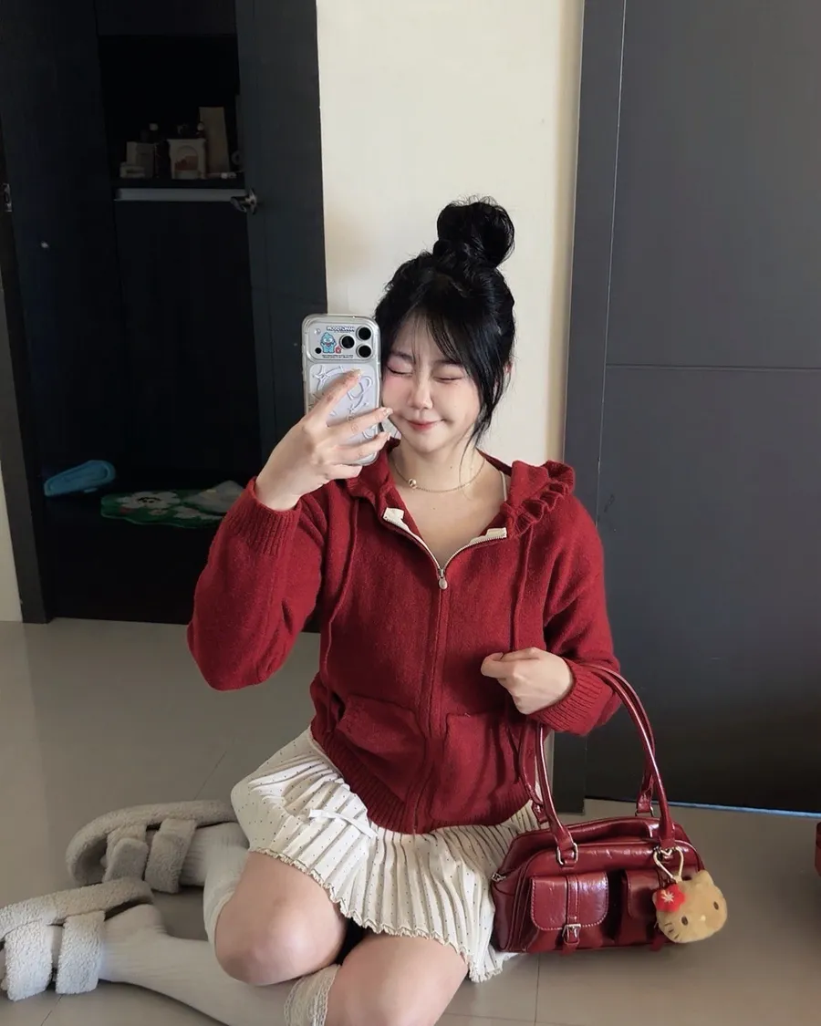荷葉邊連帽針織拉鍊外套
