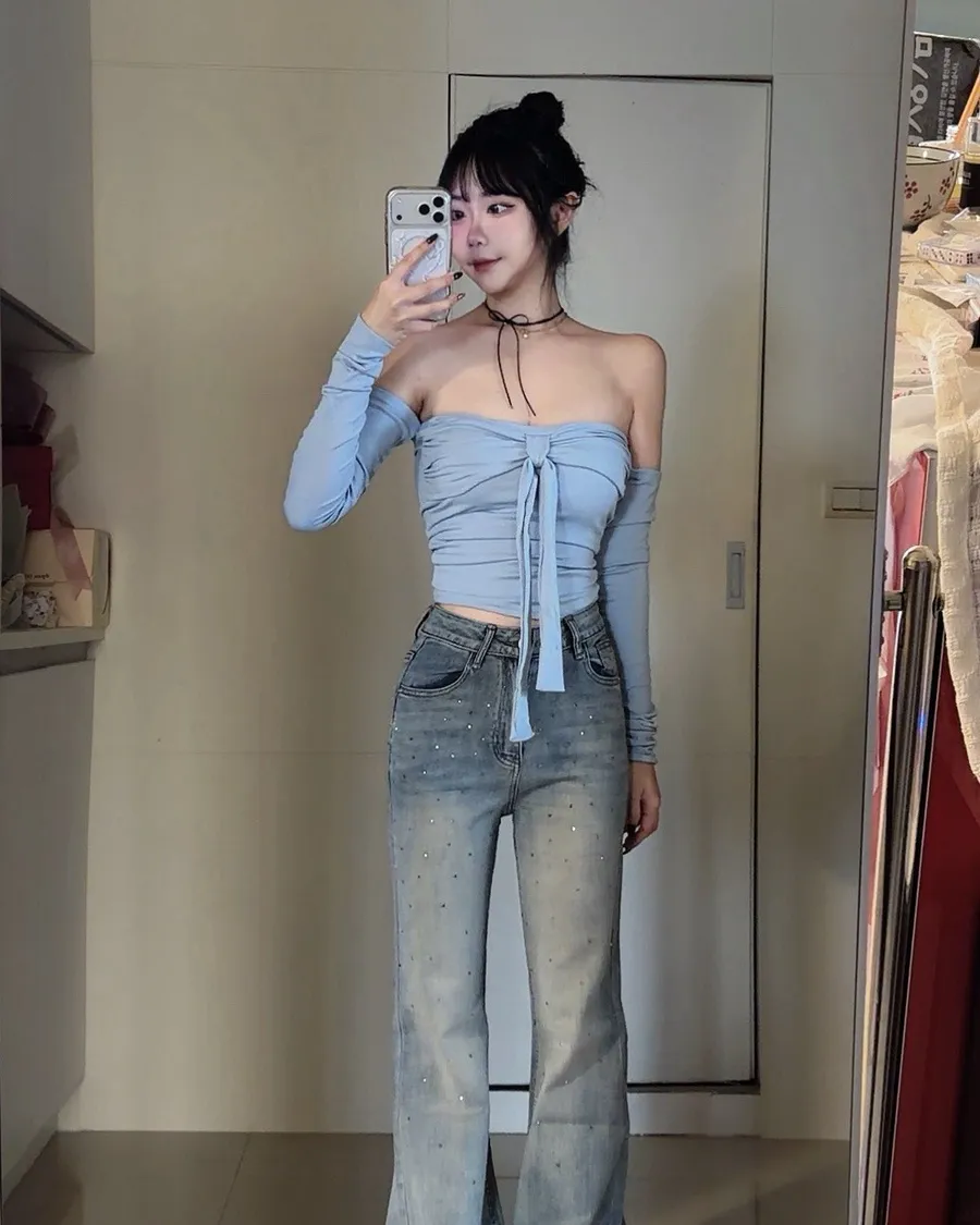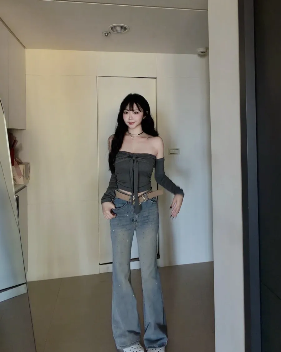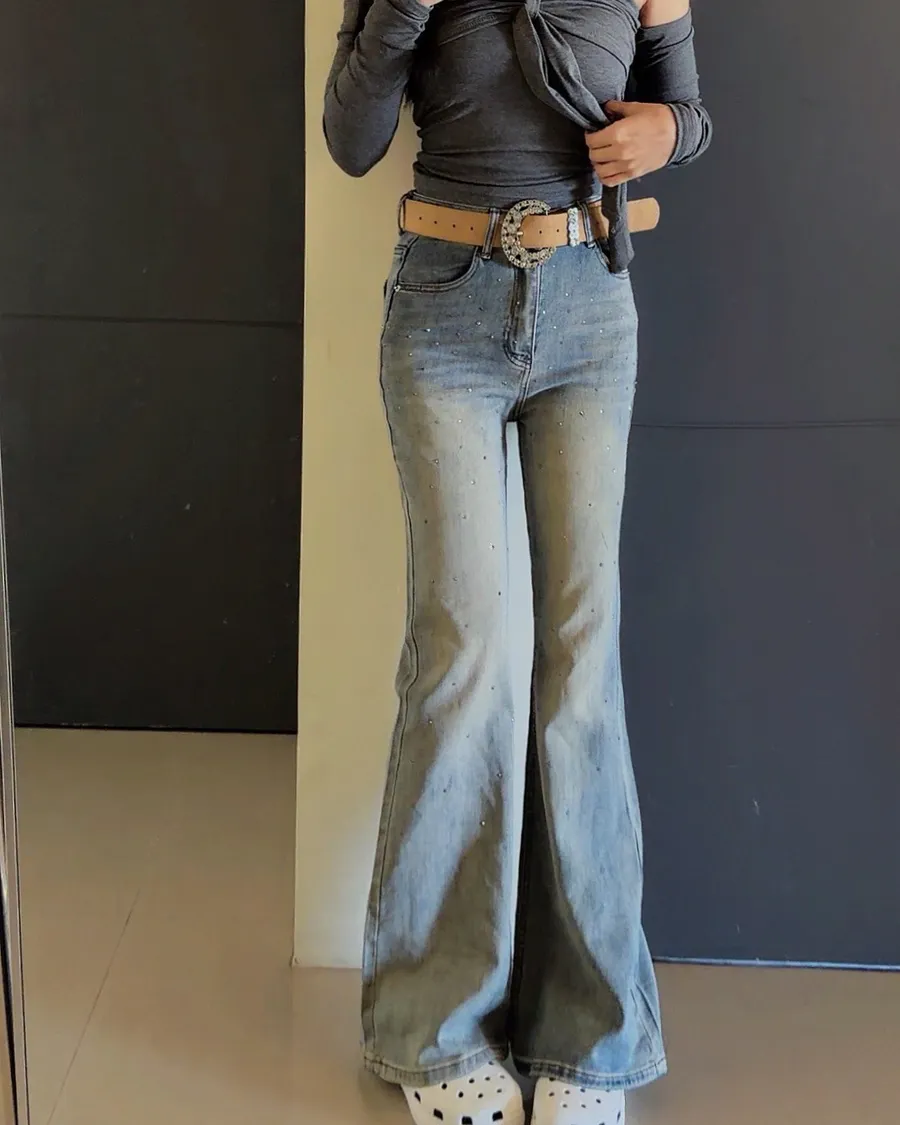 ⭐️高級星閃水鑽牛仔喇叭褲(送閃鑽皮帶!)