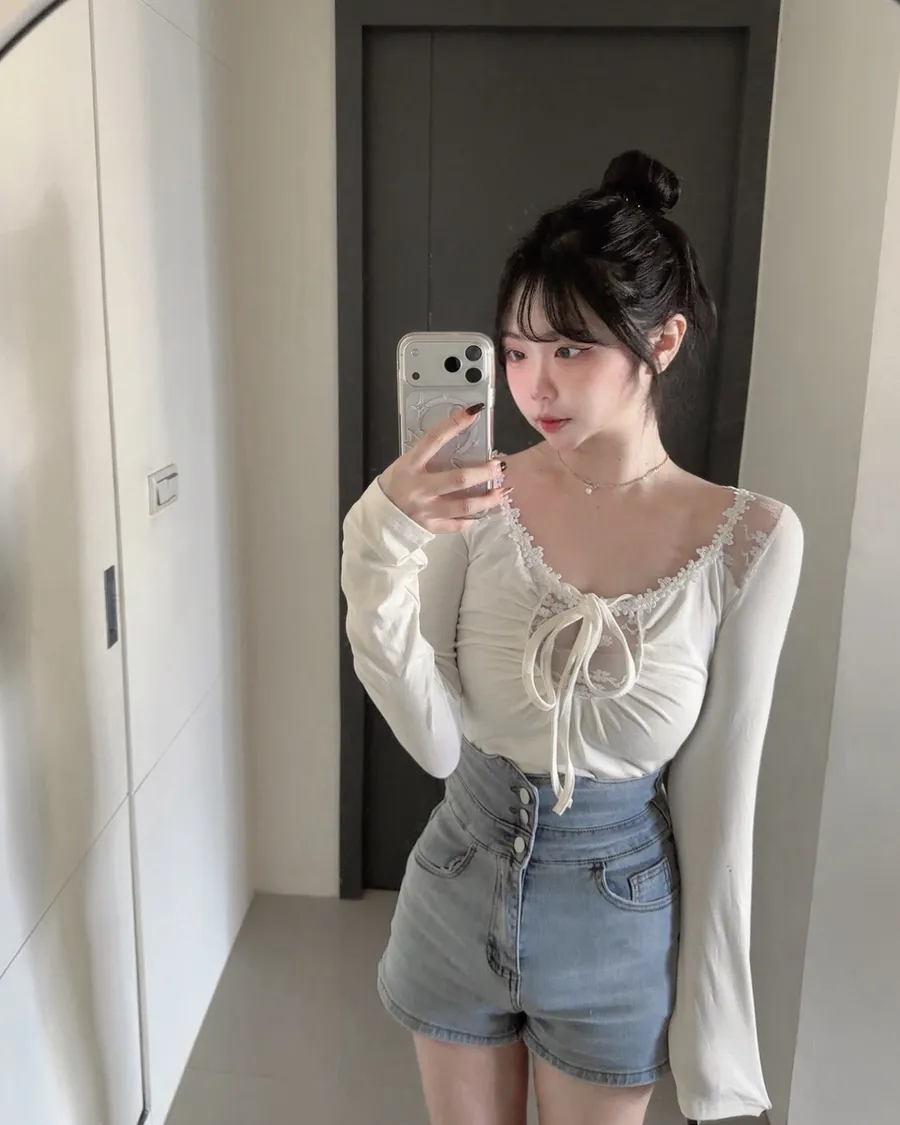 純慾小花蕾絲透膚上衣