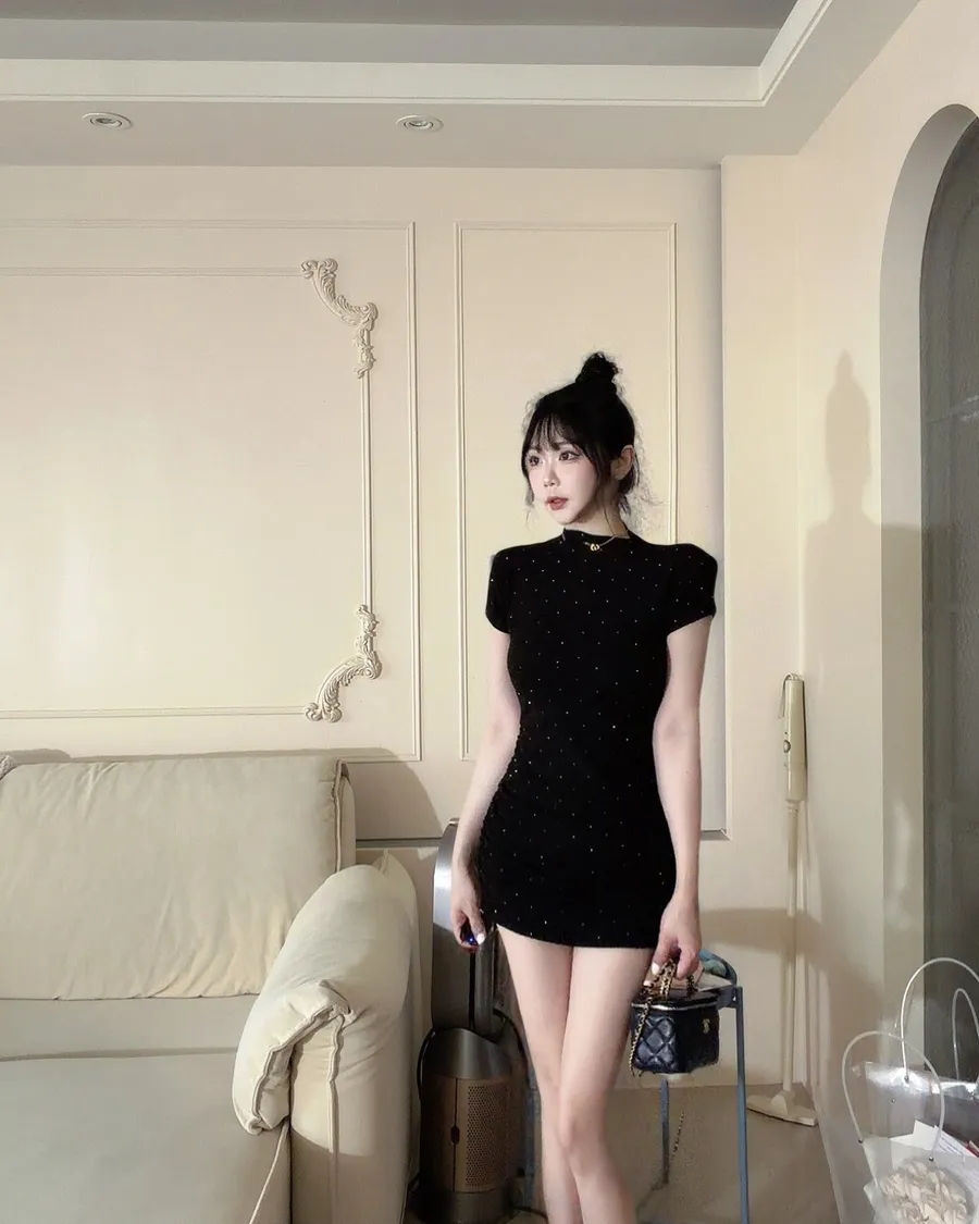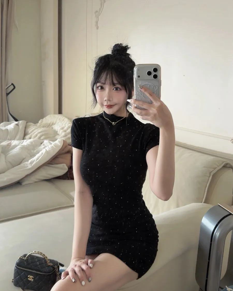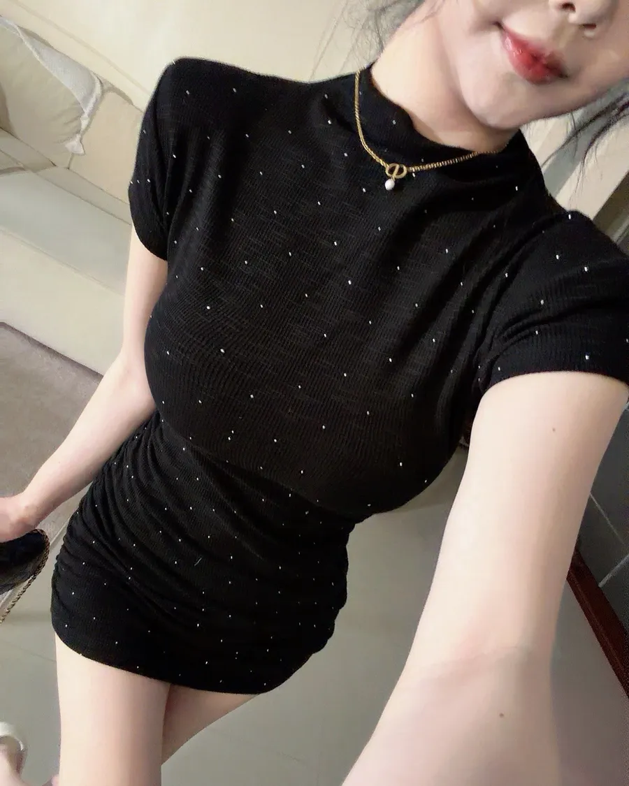 闆娘自留✨星閃鑽包臀直角肩連身裙