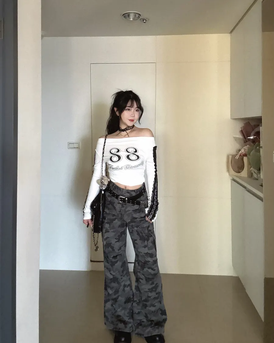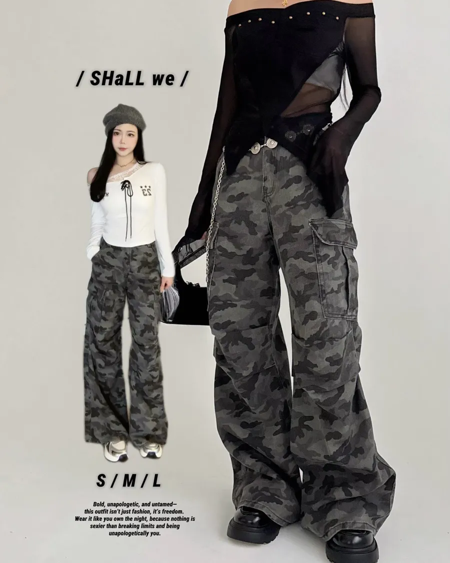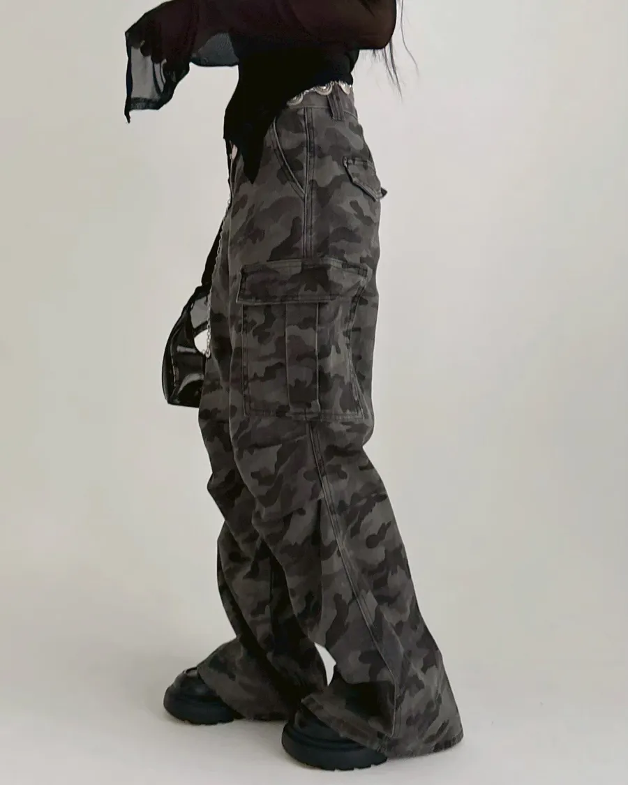 闆娘自留✨水洗灰色迷彩工裝長褲