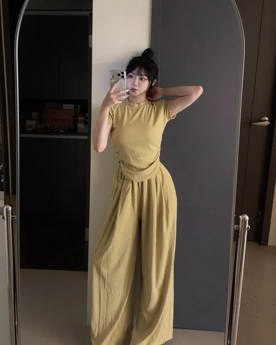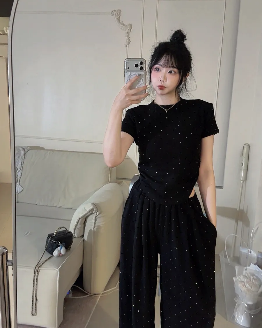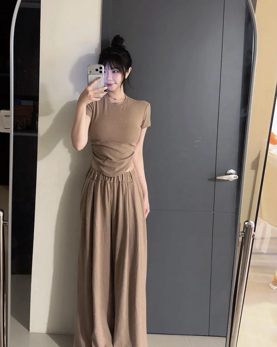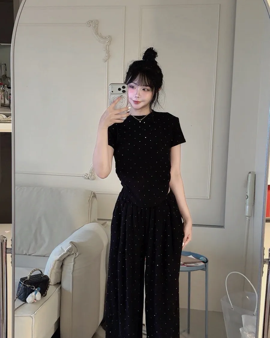 ✨細閃碎鑽縮腰上衣+寬褲set(大尺碼可穿)