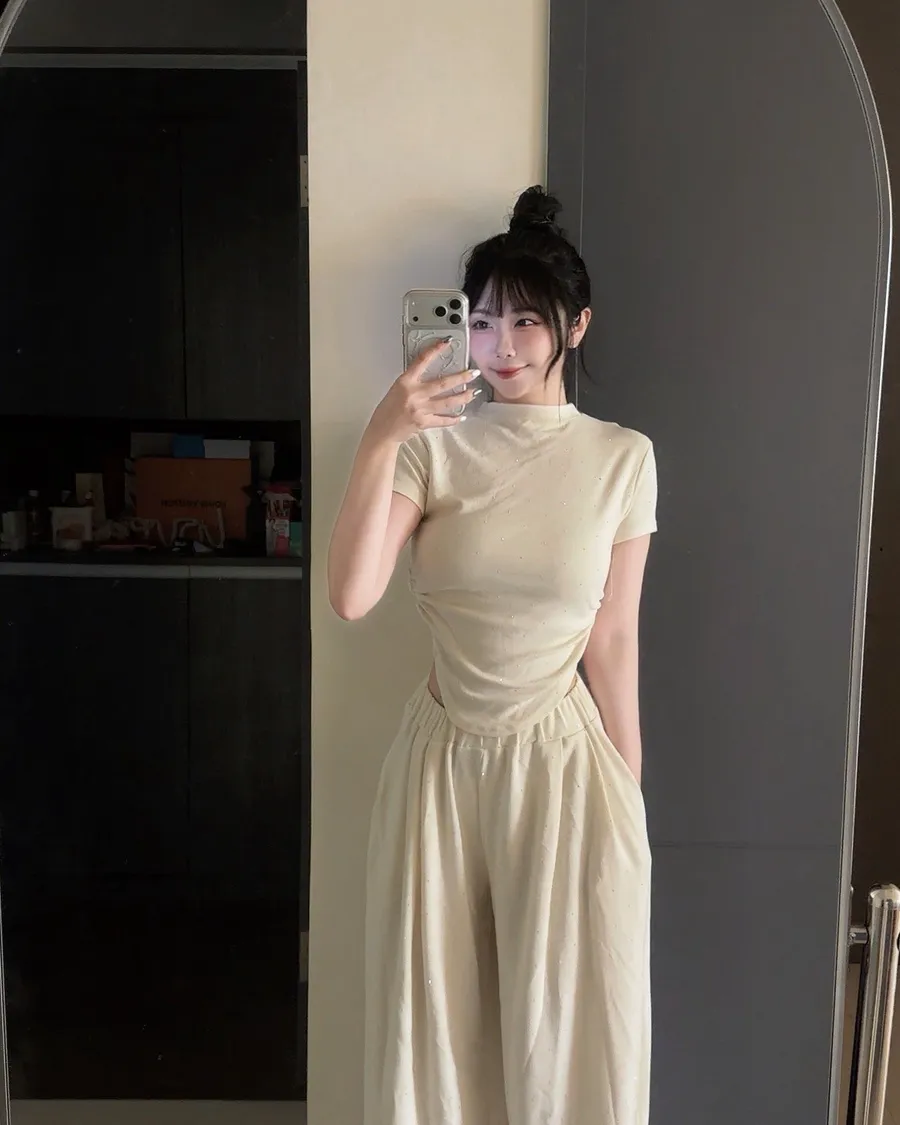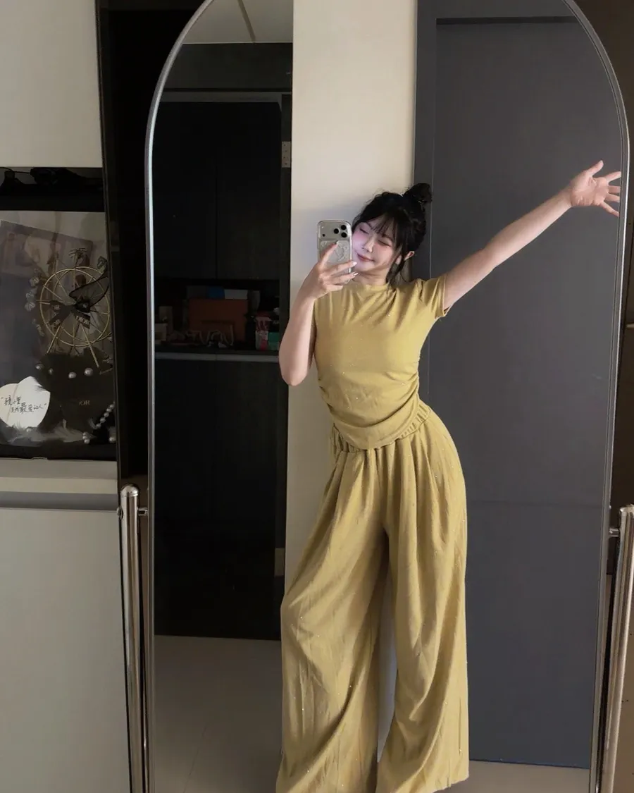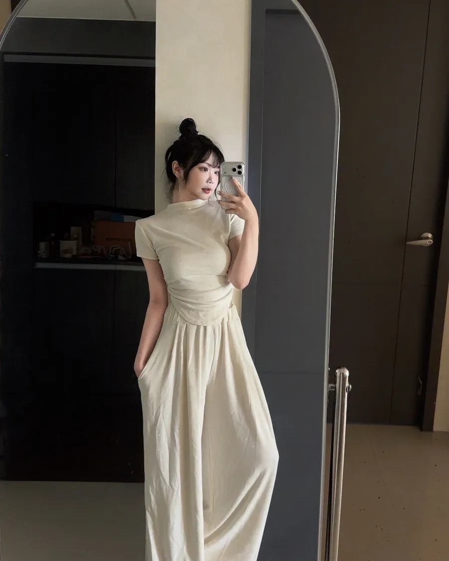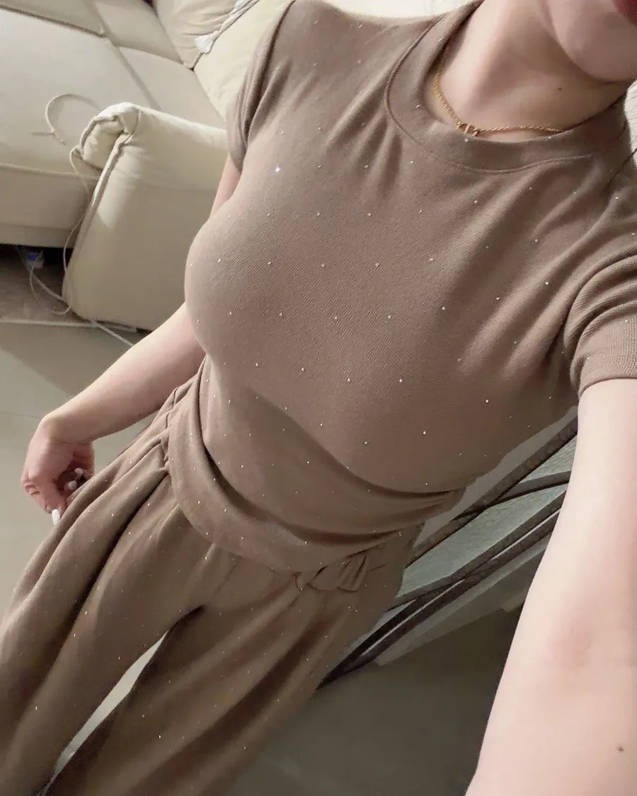 ✨細閃碎鑽縮腰上衣+寬褲set(大尺碼可穿)