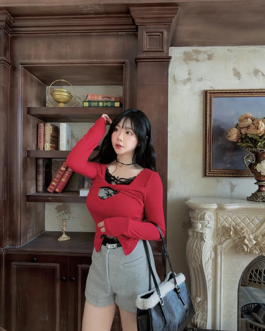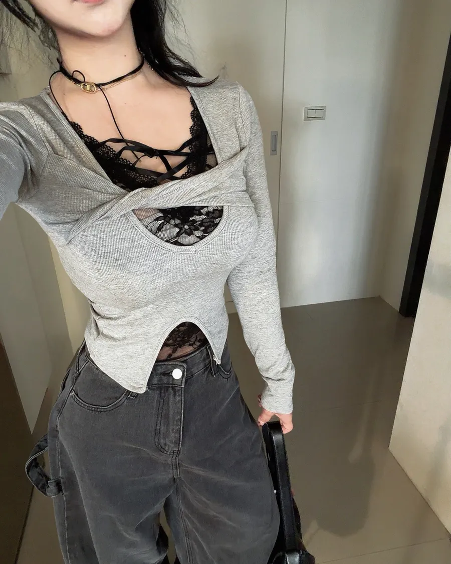 現貨!聖誕款🎄蝴蝶結蕾絲交叉磨毛上衣