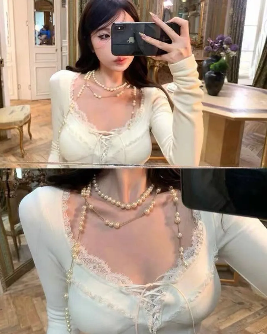 現貨!雙層蕾絲公主緞帶罩杯上衣