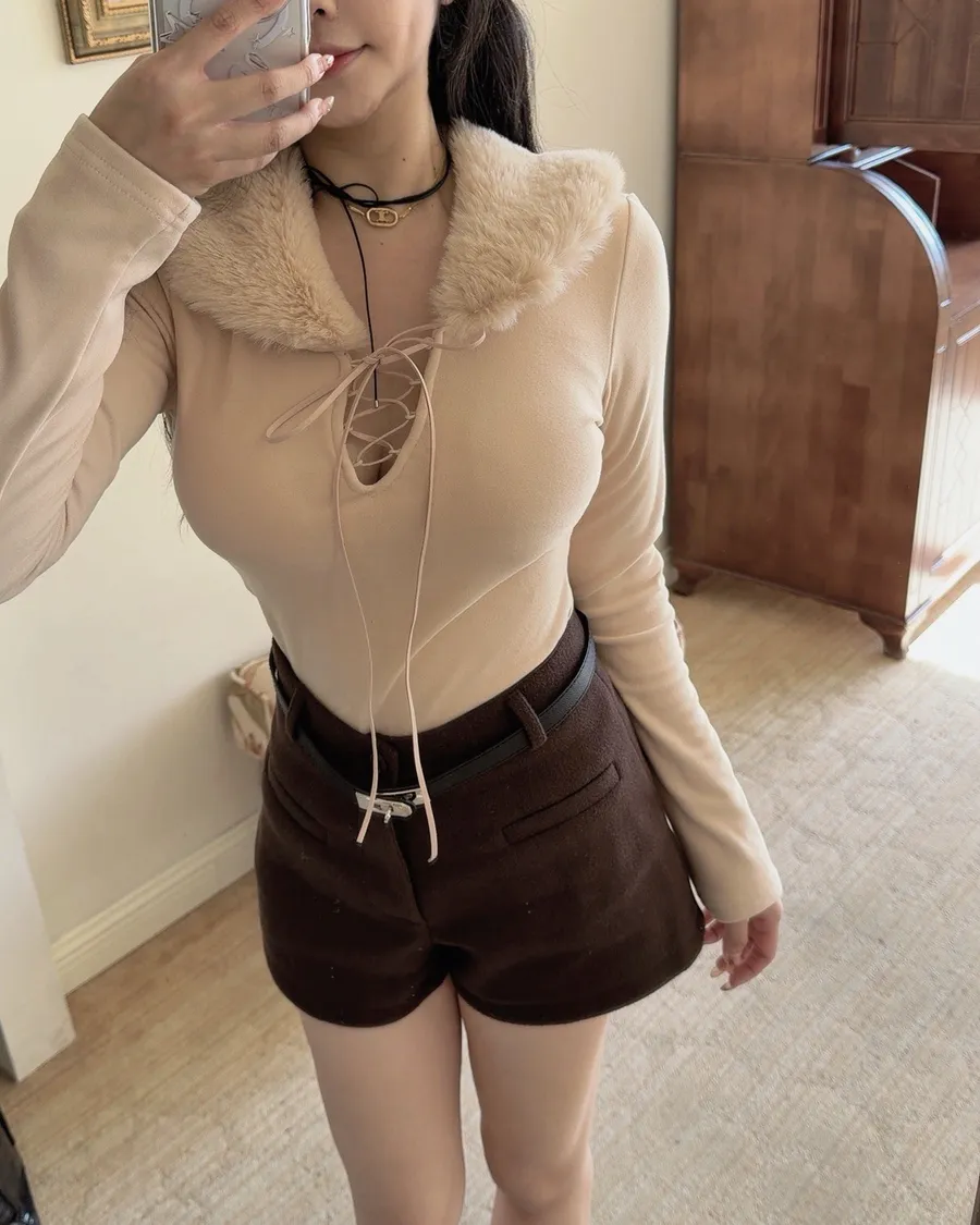 毛呢口袋短褲