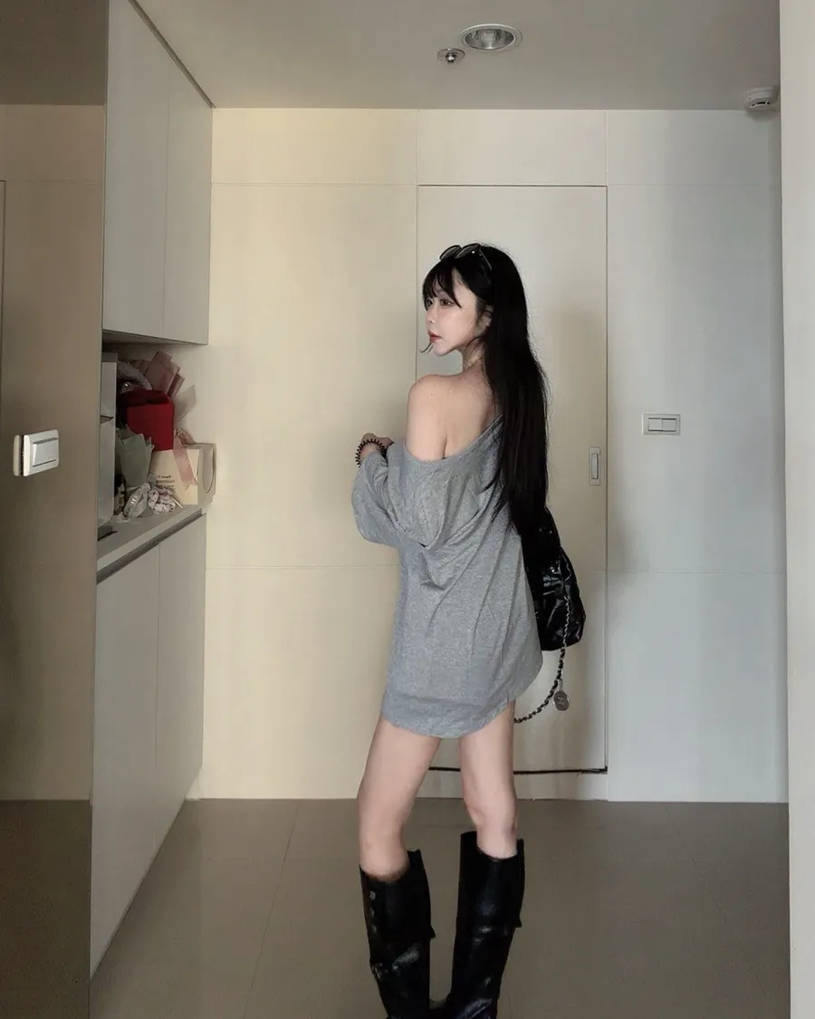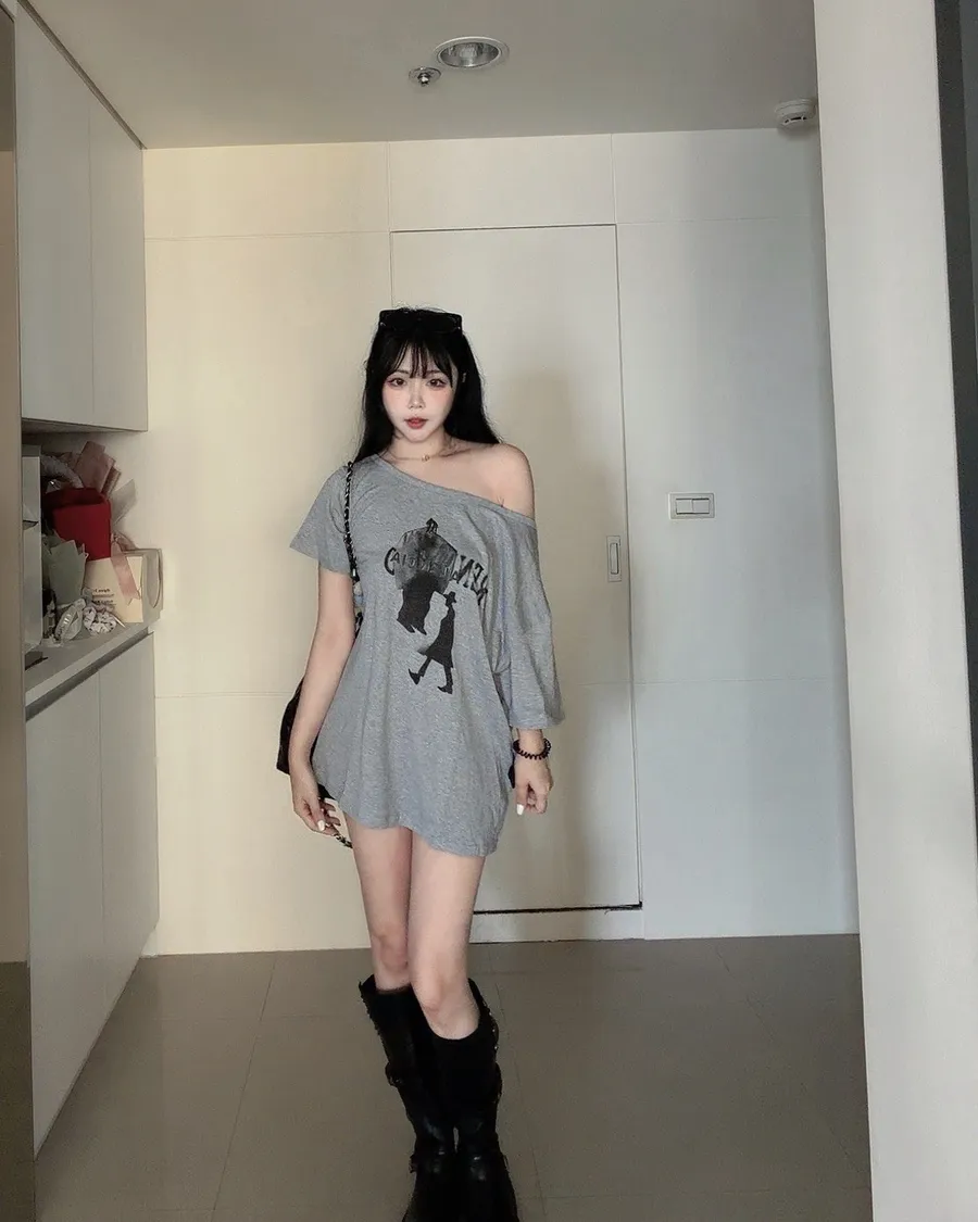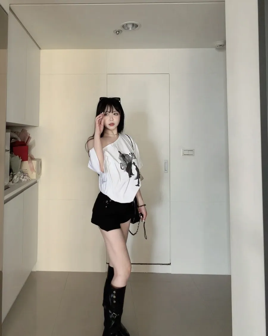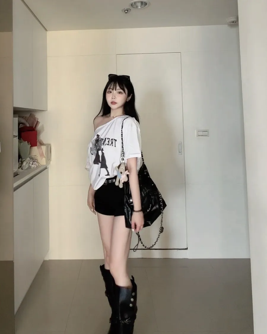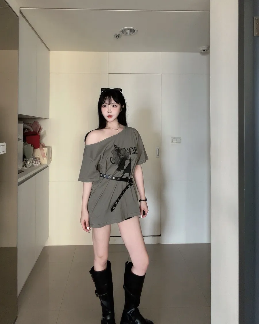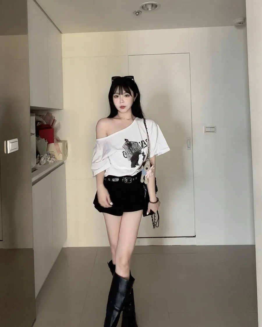 闆娘自留🖤個性斜肩印花上衣(附腰帶)
