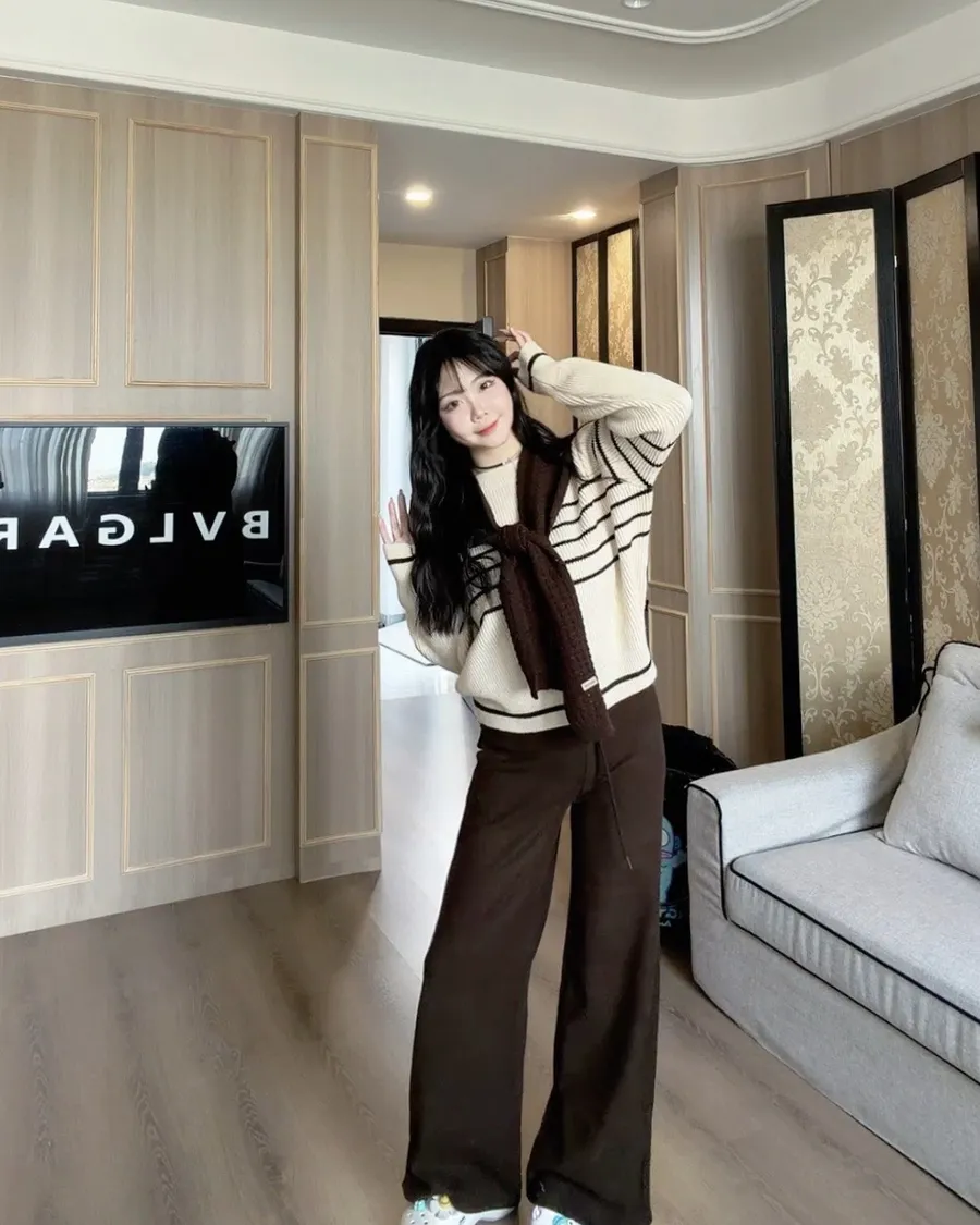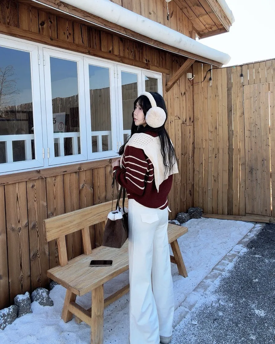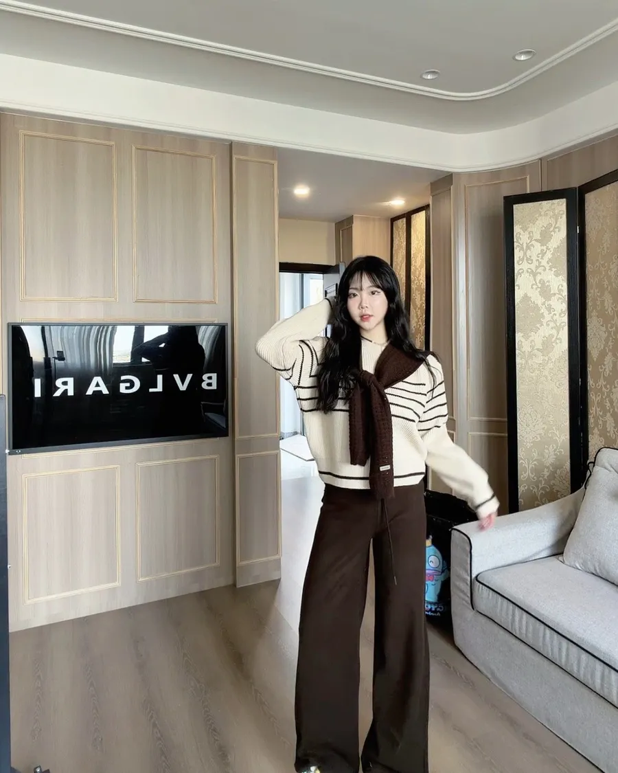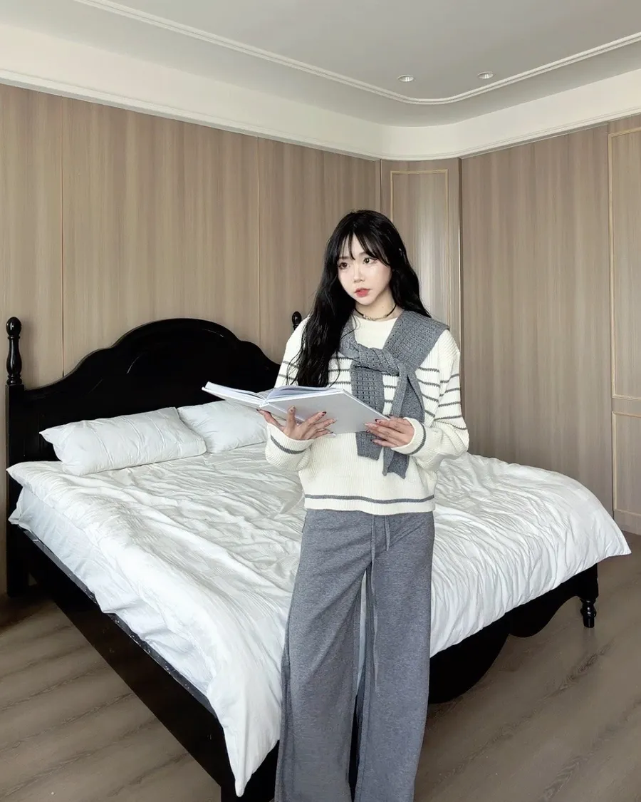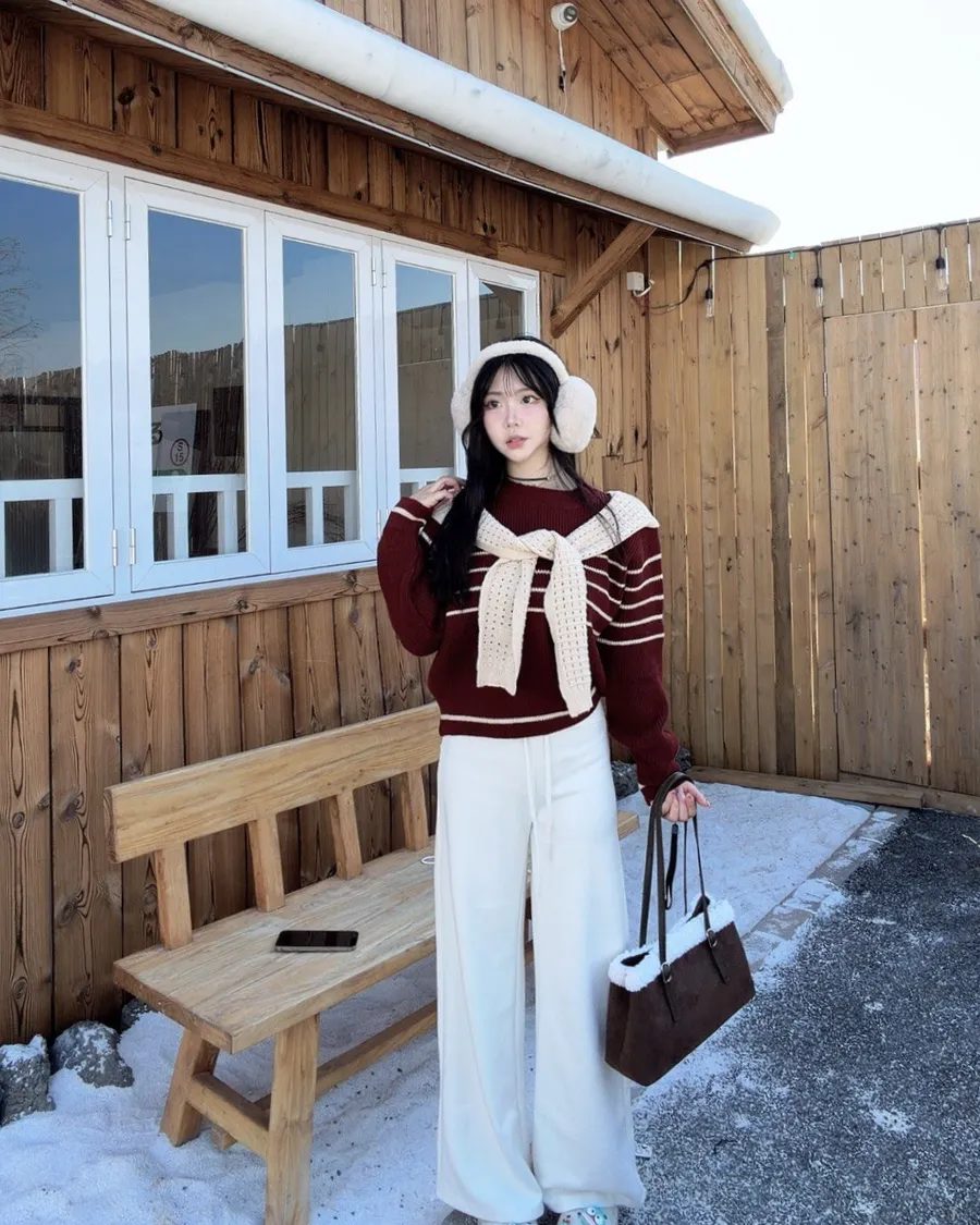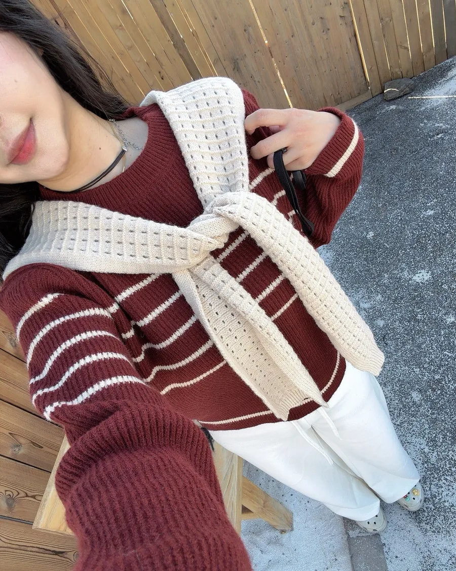 現貨!披肩條紋針織上衣兩件套