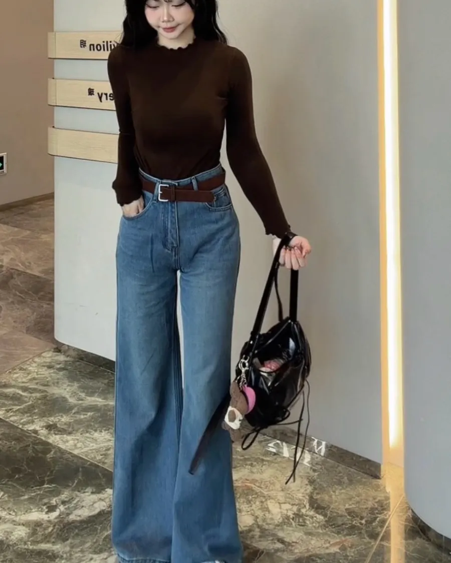 梨形救星⭐️顯瘦磨毛直筒喇叭褲(附皮帶)