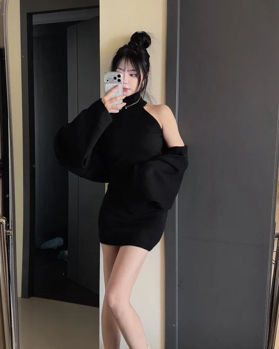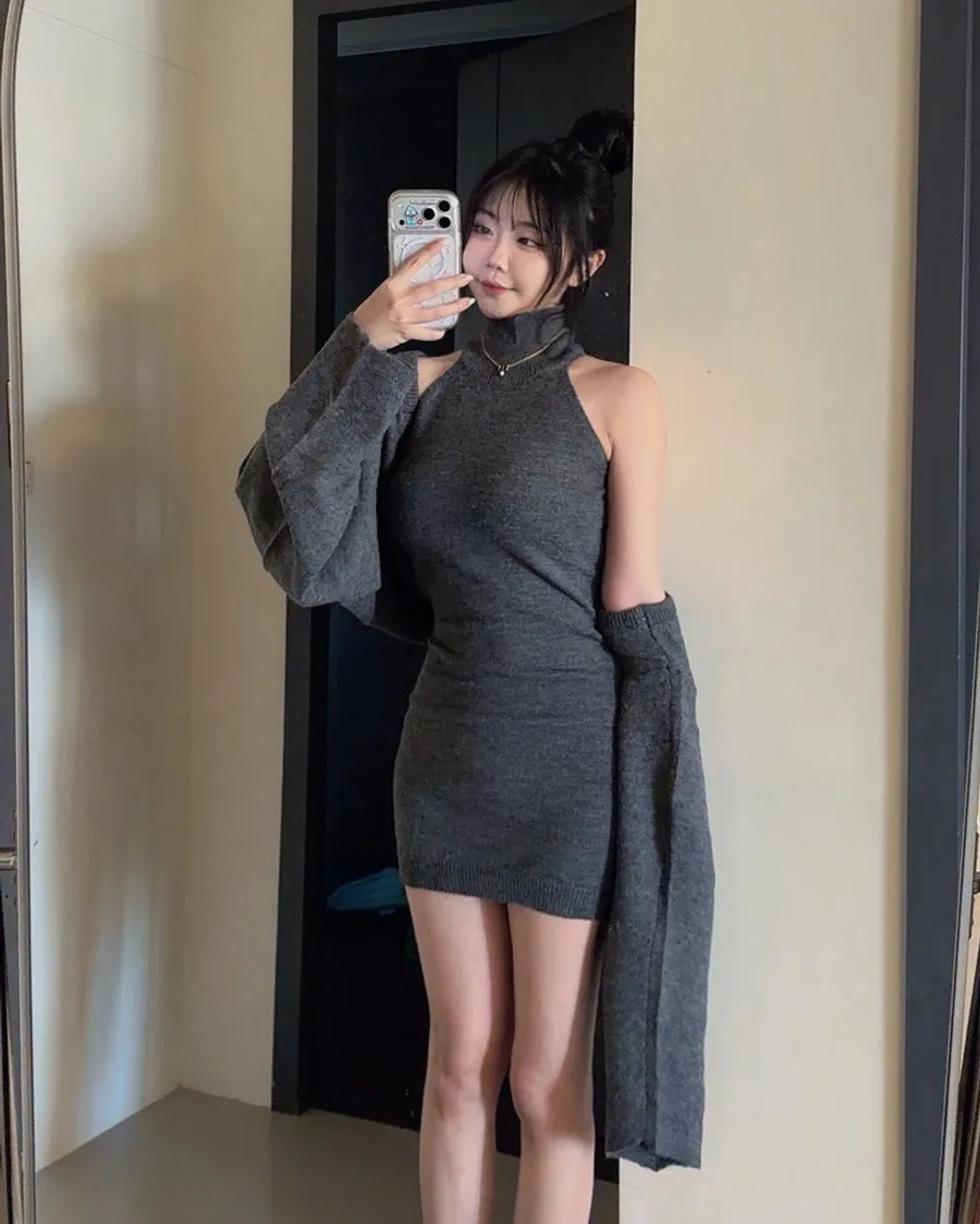 本期大推🥇北極絨純慾削肩針織洋+外罩set