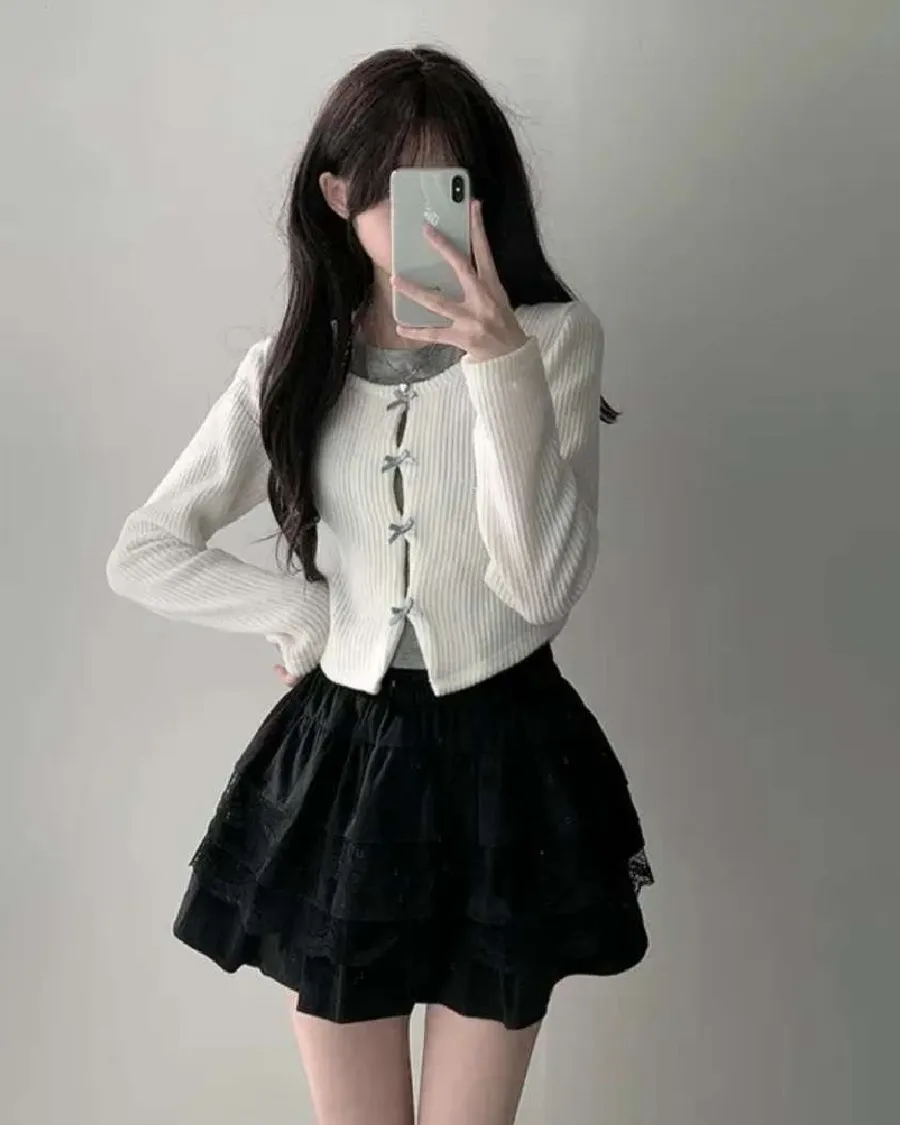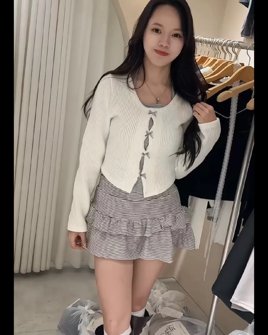 🇰🇷🌟假兩件蝴蝶結坑條針織set