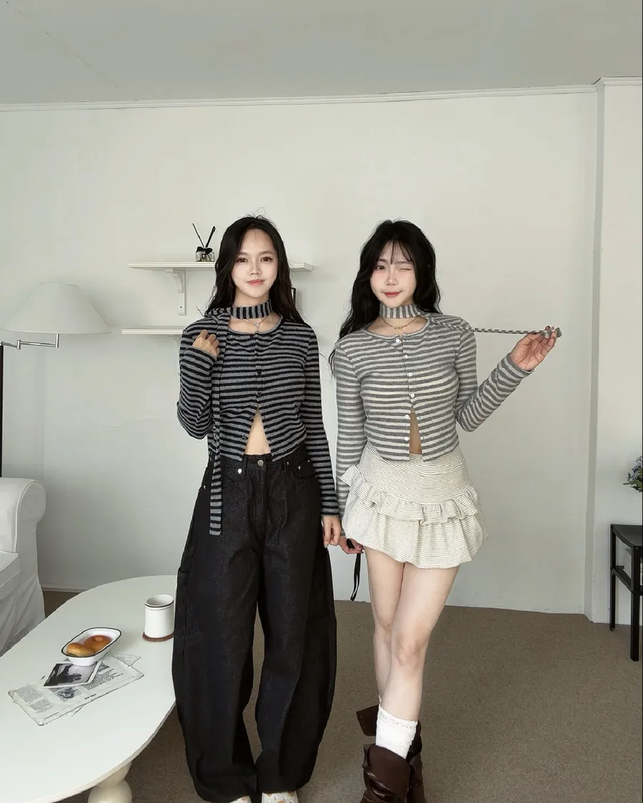 🇰🇷🌟休閒條紋鈕扣上衣(附繞脖)