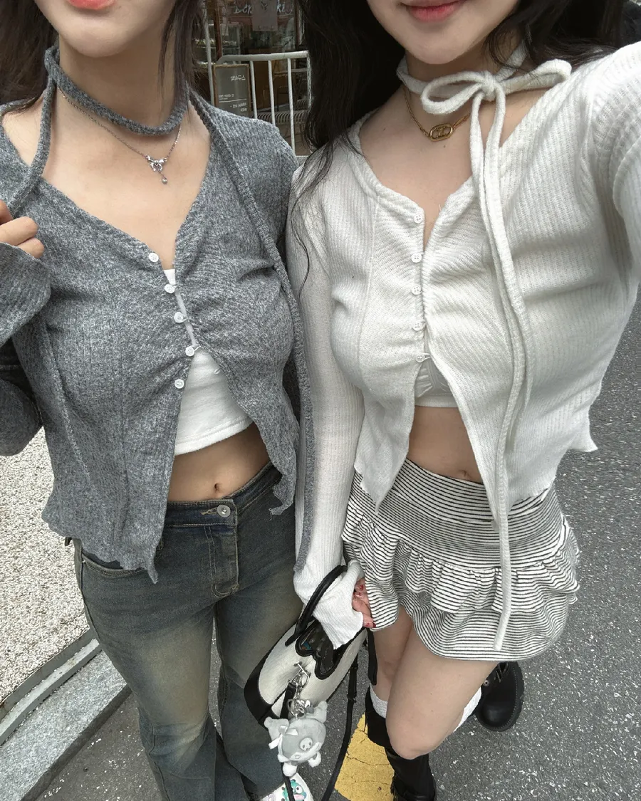 🇰🇷🌼V領鈕釦大開衩上衣(附繞脖)