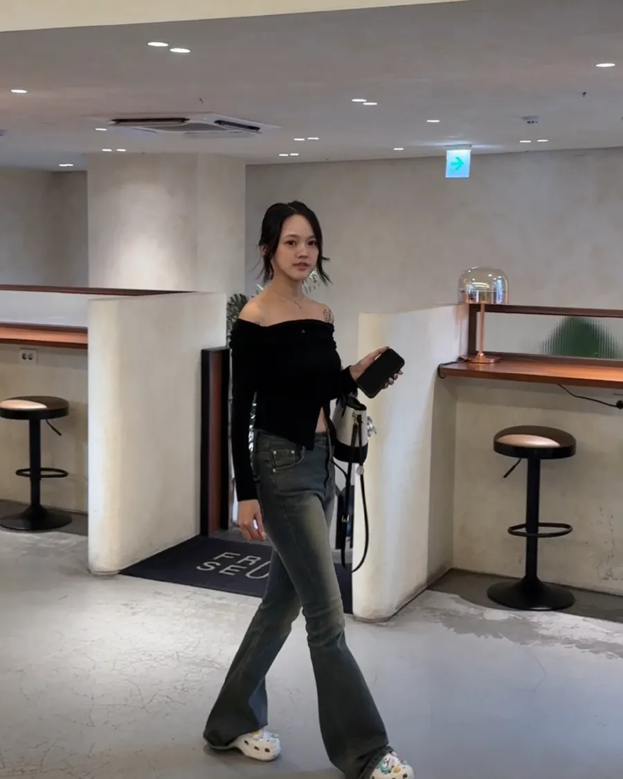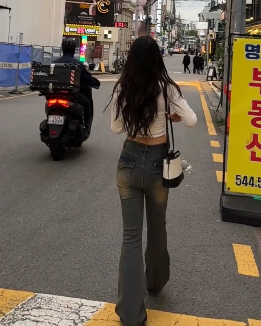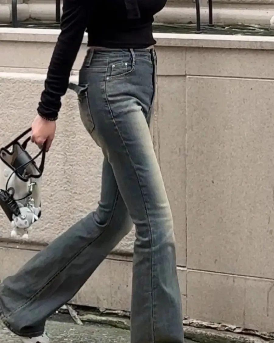 🇰🇷顯腿長!復古刷色牛仔喇叭褲